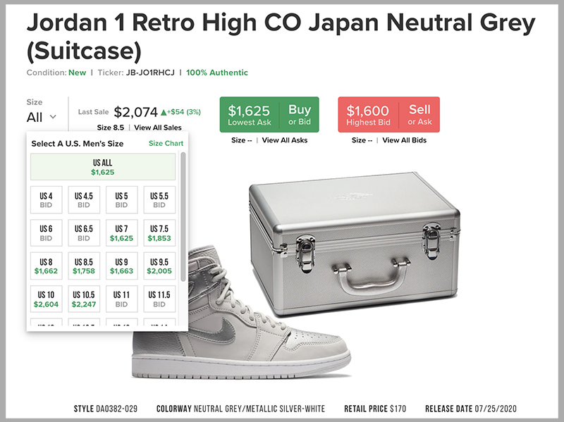 日本地区 7 月 25 日 SNKRS 率先上架,而且是拥有独立限量编号的 2020 双手提箱版本,目前市价已突破万元大关。