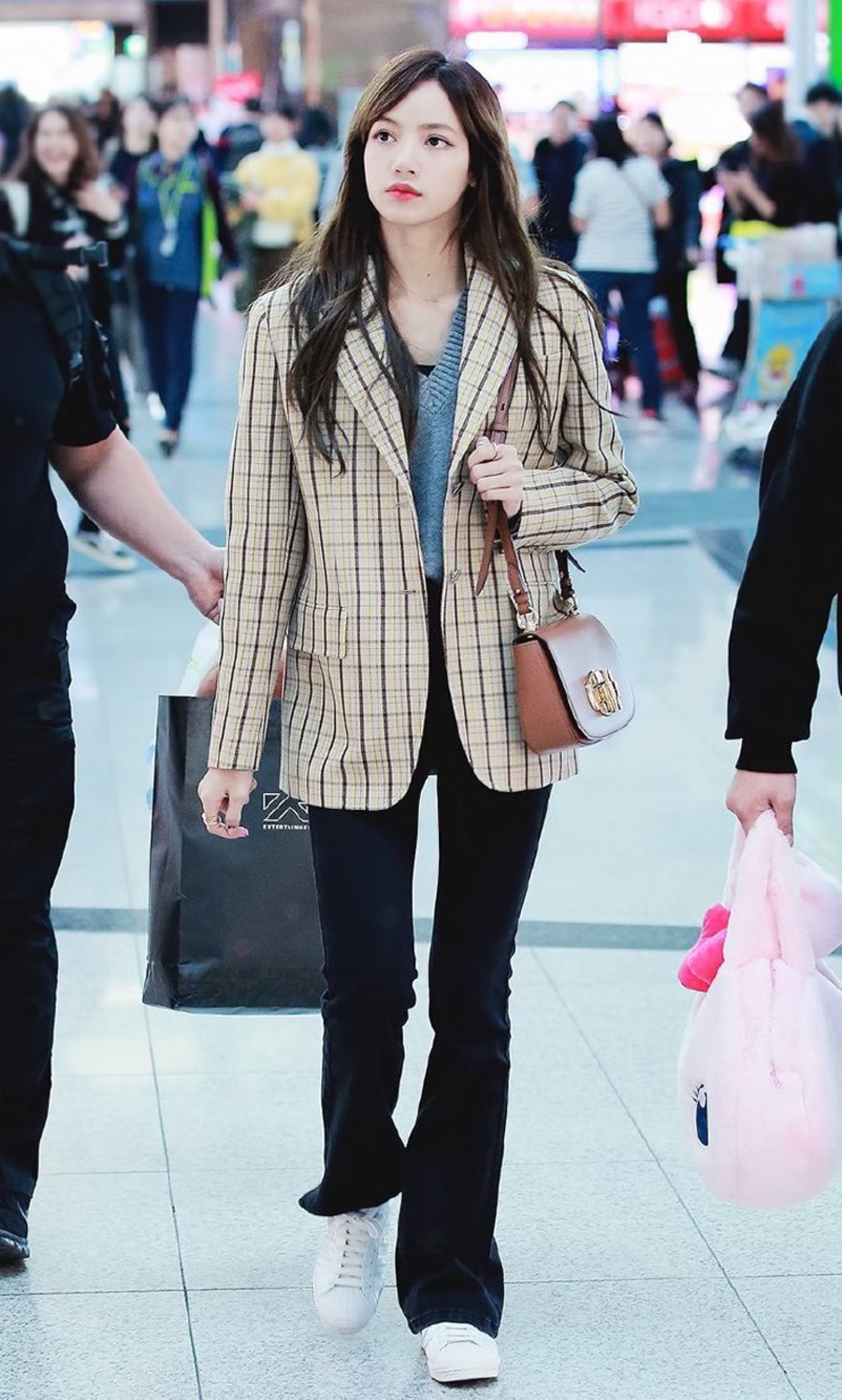 参演《 二十不惑 》的关晓彤私下酷爱球鞋穿搭,机场现身的她手提 Supreme 行李箱,上脚 Yeezy 500 “Bone White” 搭配粉色连体衣和棒球帽,年轻大胆且潮流。