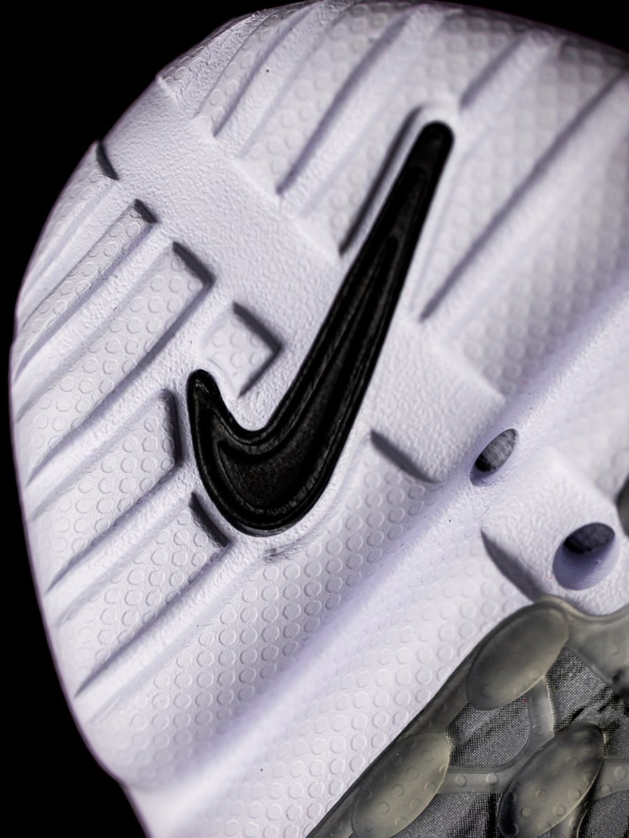 鞋侧黑色压印 Nike Swoosh 细看带有纵向纹理,在气管框架的轮廓下,若隐若现。
