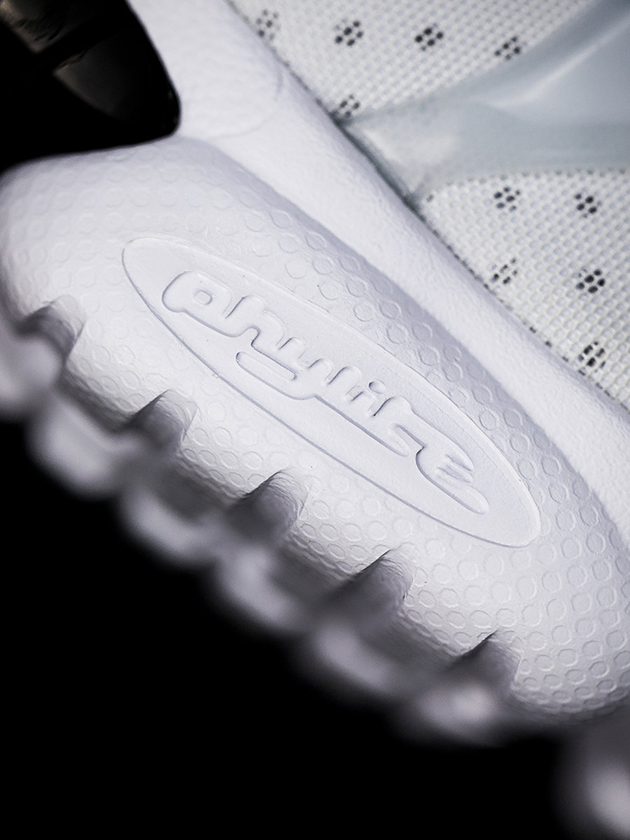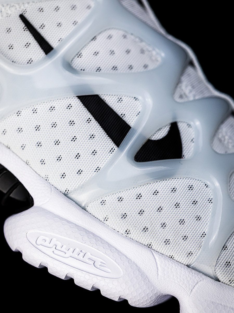 本次鞋款以 2000 年 Alpha Project 旗下跑鞋 Air Kukini 为灵感,前卫、怪异的半透明框架与人体血管类似。