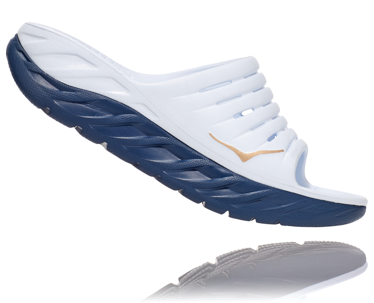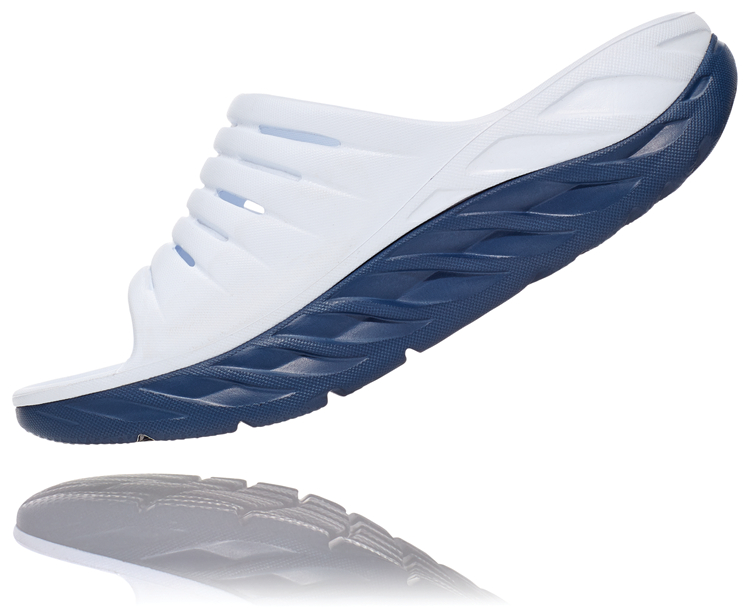 第四双为 ORA,是一款拖鞋,鞋面采用白色呈现,并饰有金色 HOKA Logo,整体造型十分简约素净。