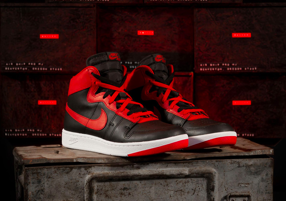 此番的 Nike Air Ship OG 黑红禁穿目前定档在了 8 月 7 日发售,率先登陆意大利时尚店铺 Back-Door。