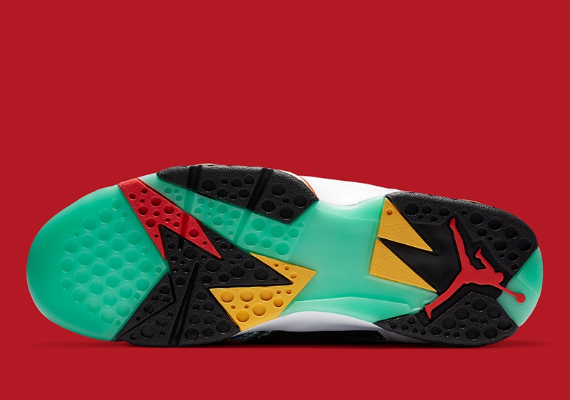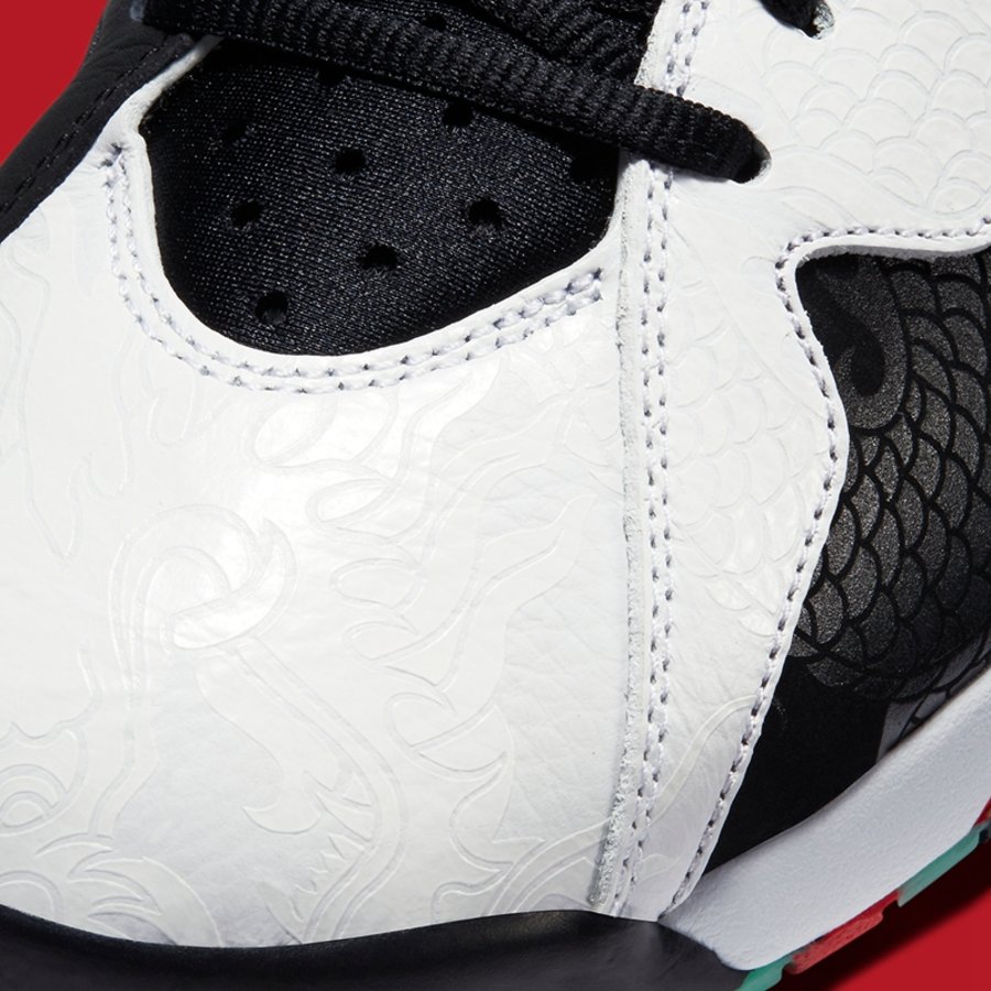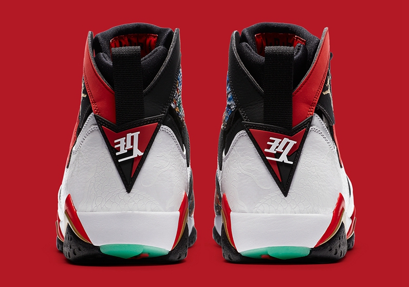 鞋舌点缀刺绣印章,而后跟位置 Air Jordan 7 独有的乔丹梦之队球衣号码,则以汉字“玖”示人。