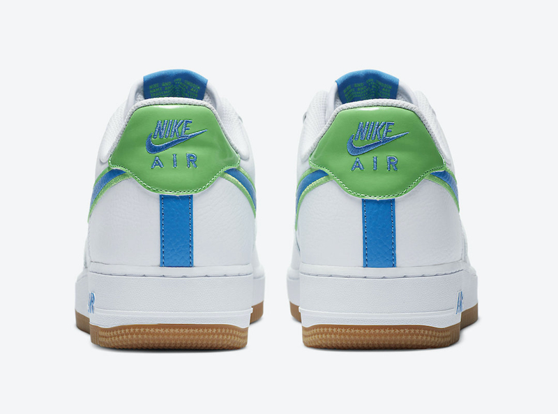 鞋舌、鞋垫、后跟以及中底上的 AIR 字样均以蓝、绿两色呼应。