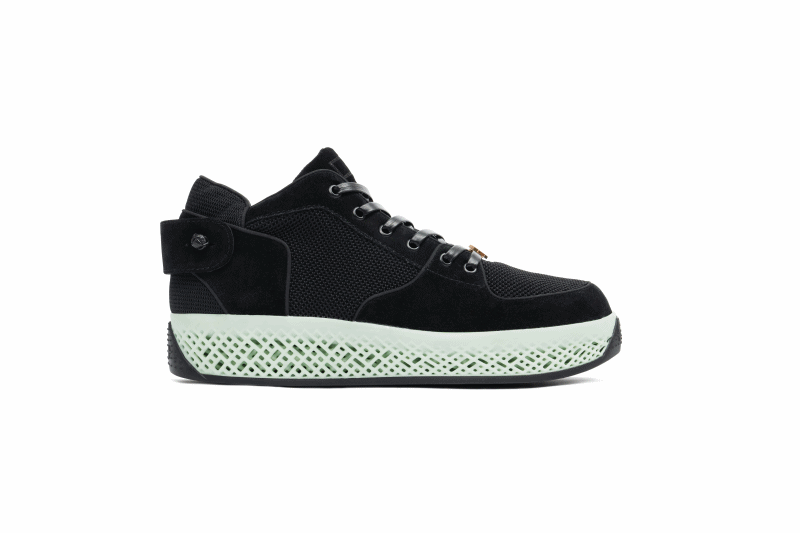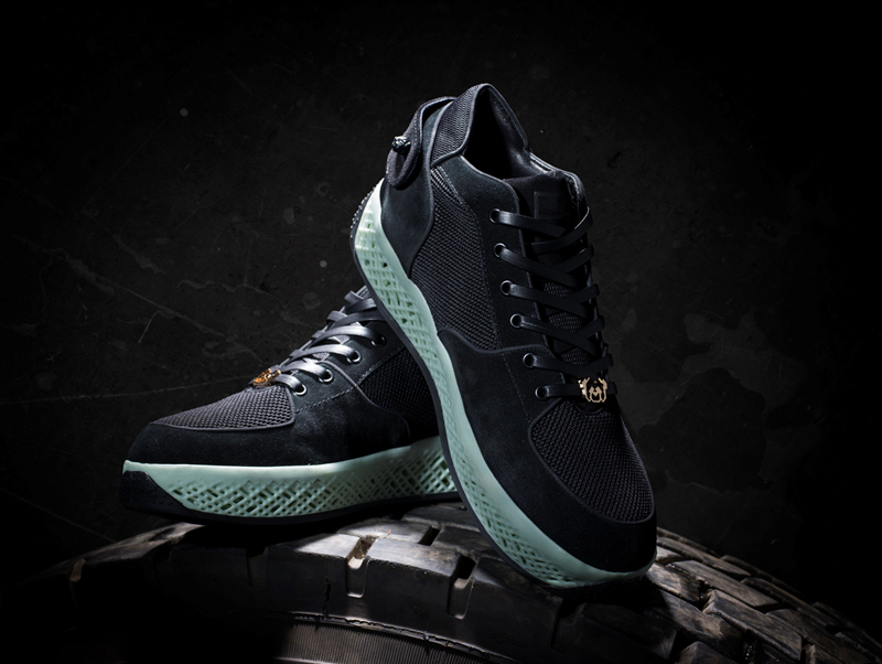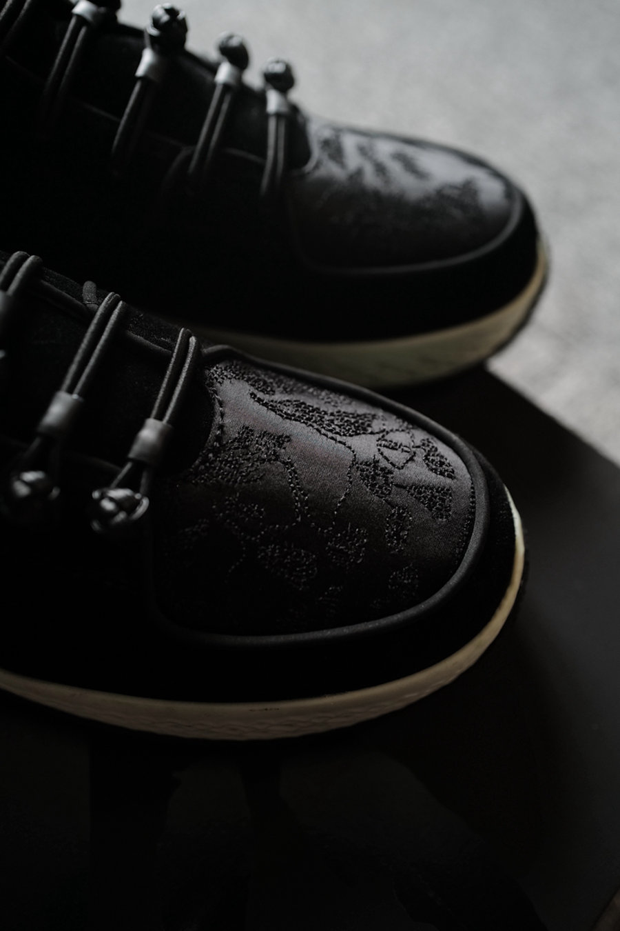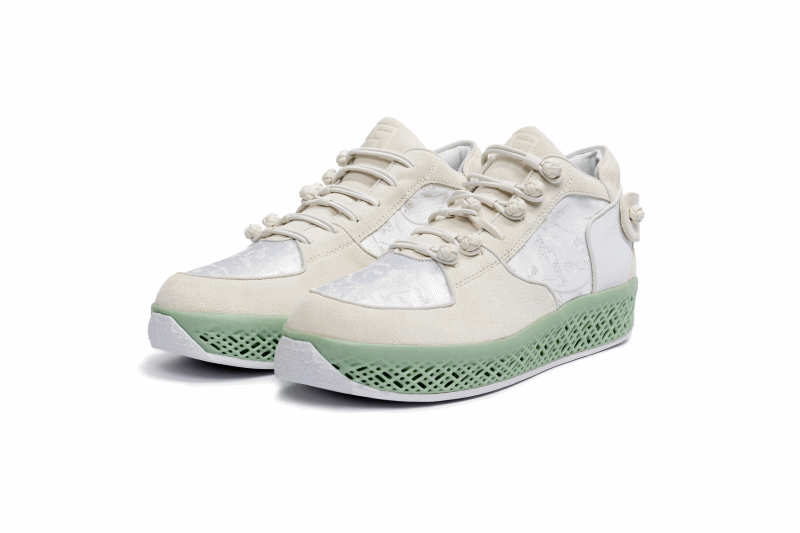 鞋身以丝绸面料覆盖,中底部分采用 3D 打印技术来赋予传统的竹丝镶嵌现代的面貌。