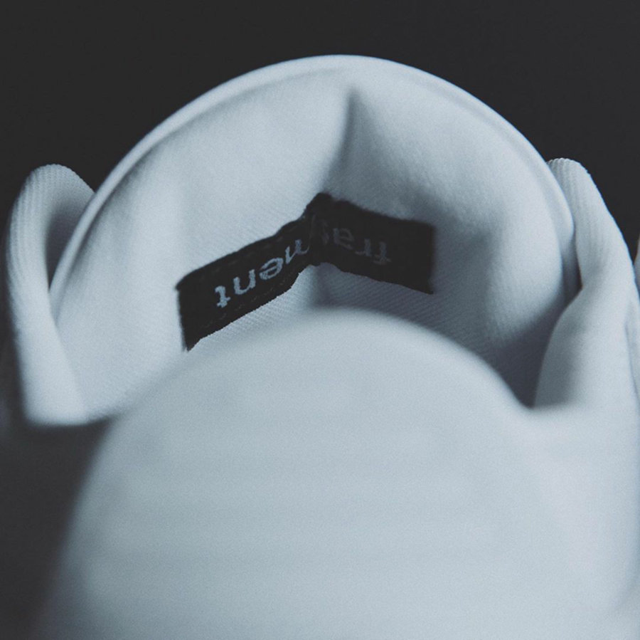 白色中底上印有黑色字符,鞋舌内侧同样缝有 “fragment” 标签,以此彰显联名身份。