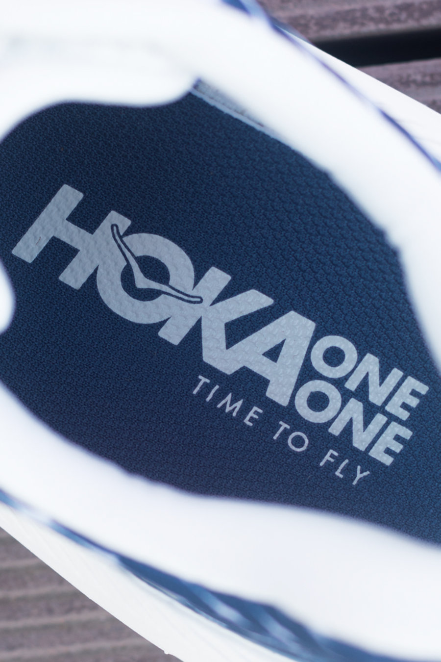 鞋垫印有 TIME TO FLY 字样,彰显出 HOKA ONE ONE 一直以来的品牌态度。