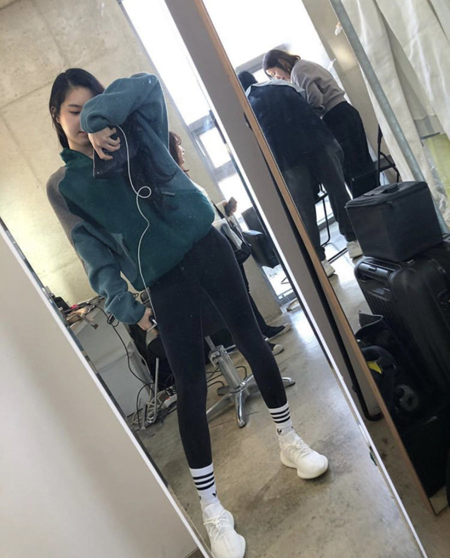 不论是练习室还是私下经常能看到它的身影,并且可以搭配出古灵精鬼、复古时尚等不同的风格。