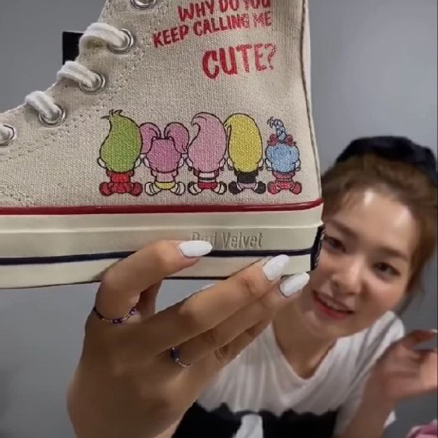鞋身上绘有她所在组合的标志形象,简单可爱且经典百搭。