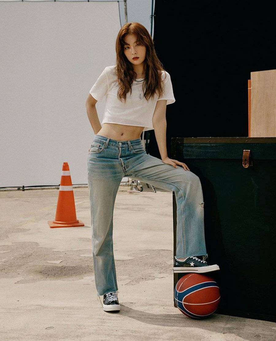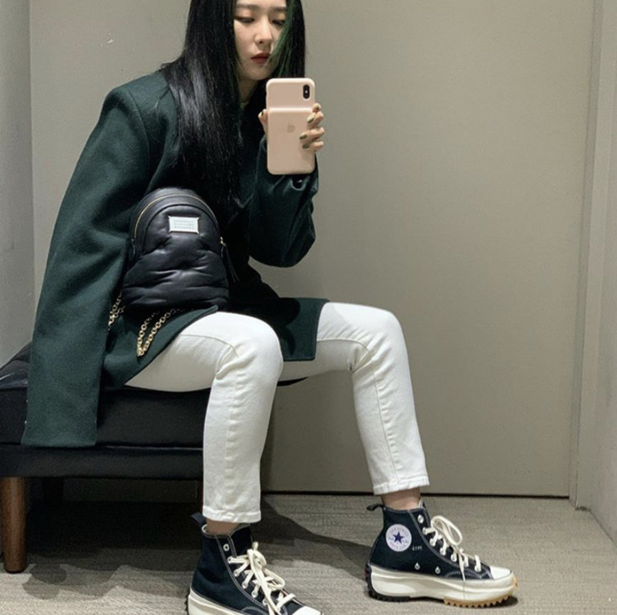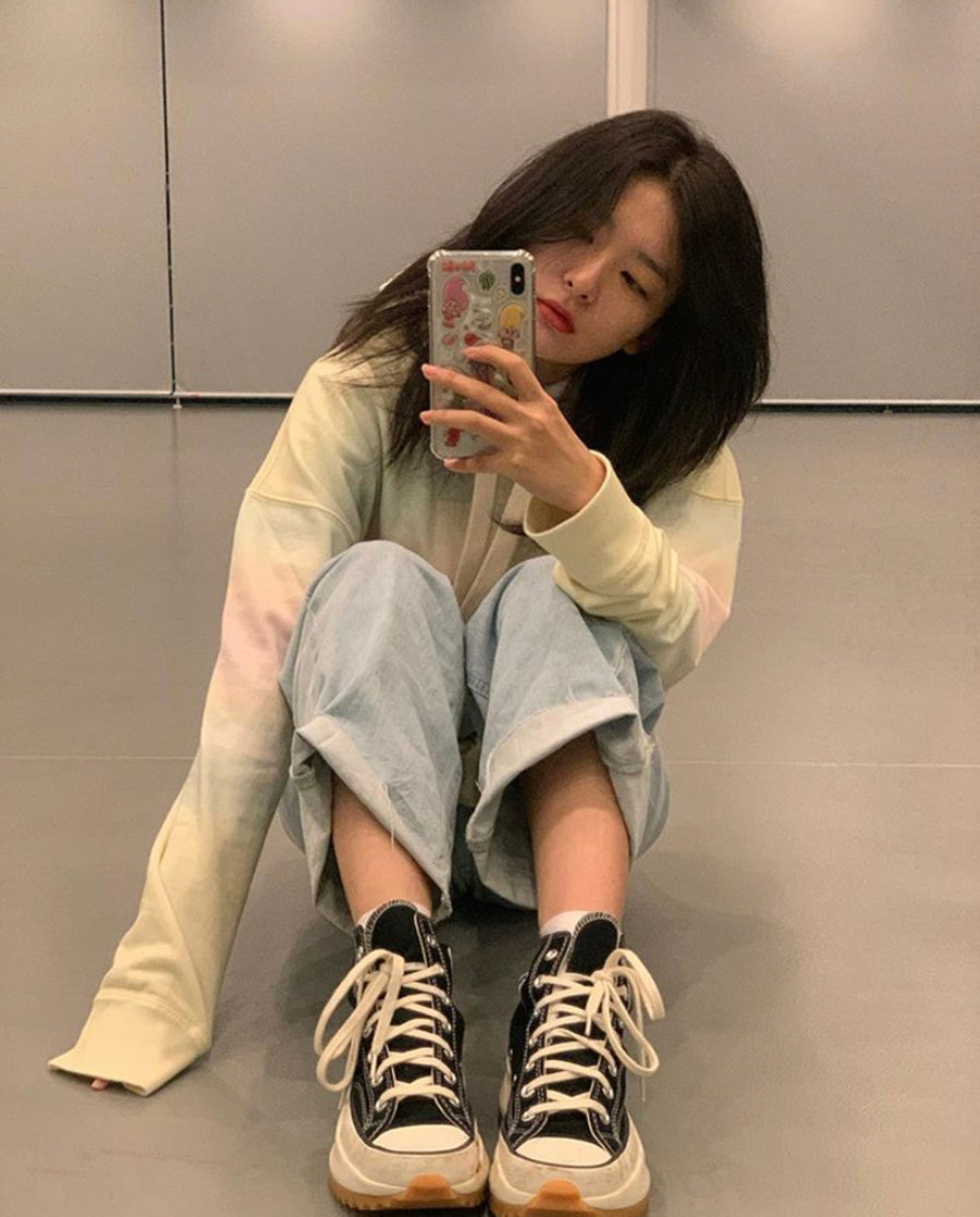 要说能和拥有海量 Converse 的欧阳娜娜相匹敌的,只有作为韩国 Converse 首席女代言人的姜涩琪了。