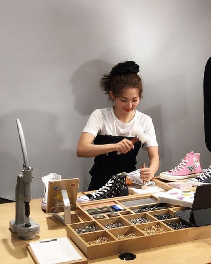 涩琪还在本年参与了 Converse 店铺的线下定制活动,亲手参与制作了独一无二的 Converse 鞋款。