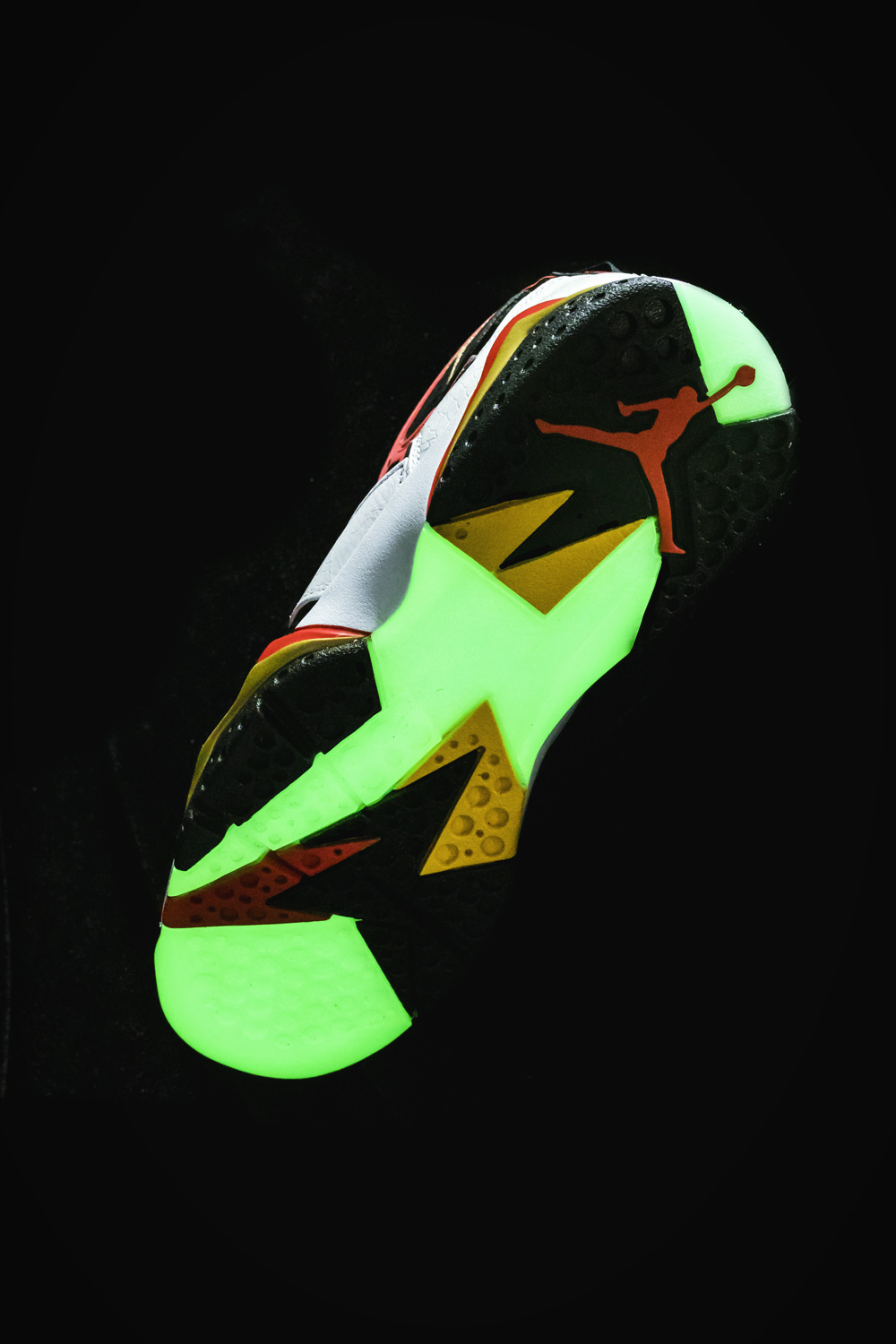 鞋底呈现中国玉装扮,绿色部分暗藏夜光效果,在夜晚同样耀眼华丽。