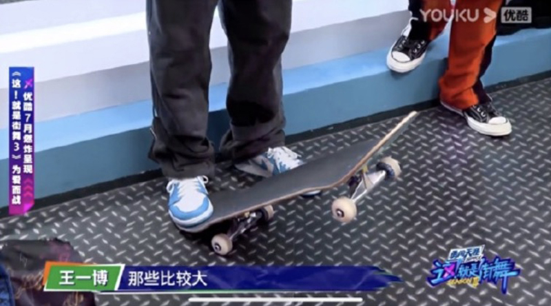 《街舞 3》中王一博上脚北卡 Nike SB x Air Jordan 1 Low,在节目中直接踩上滑板,尽显板仔身份