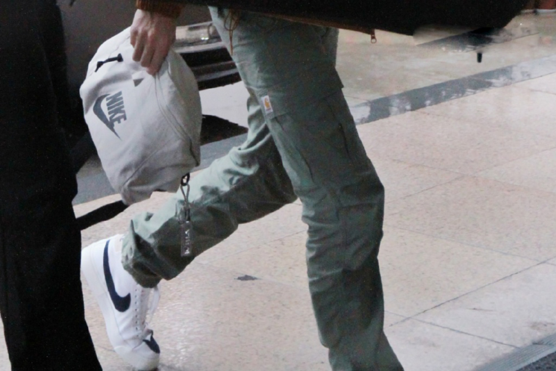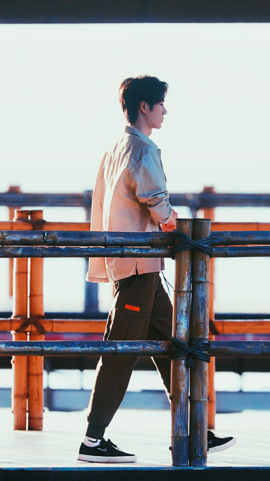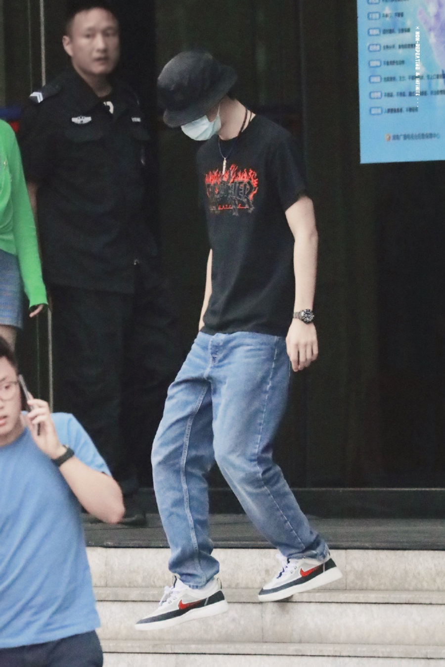 上周王一博还上脚了一双 Nike Air Force 1,与经典的纯白配色相比,后跟处的双层 Air 字样显得更加富有特色。