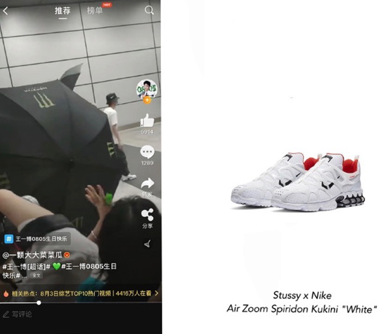 王一博在生日前夕上脚 Stussy x Nike 2.0,搭配一身 Stussy x Nike 联名套装。而这双鞋的销量与市场价格也随着水涨船高,甚至还被网友戏称为 “王一博生日鞋”。