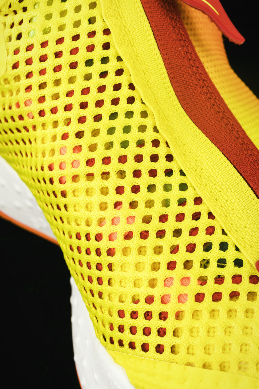 鞋面采用红黄渐变设计,虽然与大家熟悉的番茄炒蛋配色相似,但其实灵感来自彩色泡椒。
