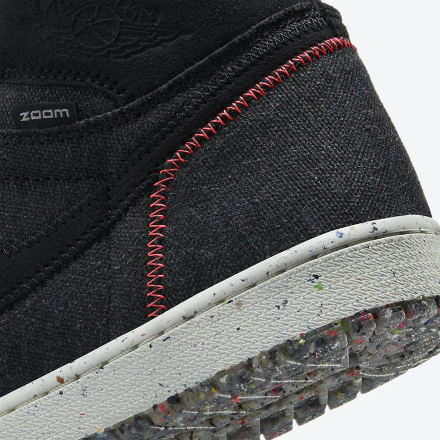 以 Air Jordan 1 High Zoom 为原型,鞋面深灰色以回收环保织物打造,粗糙的质感酷似单宁布材质。