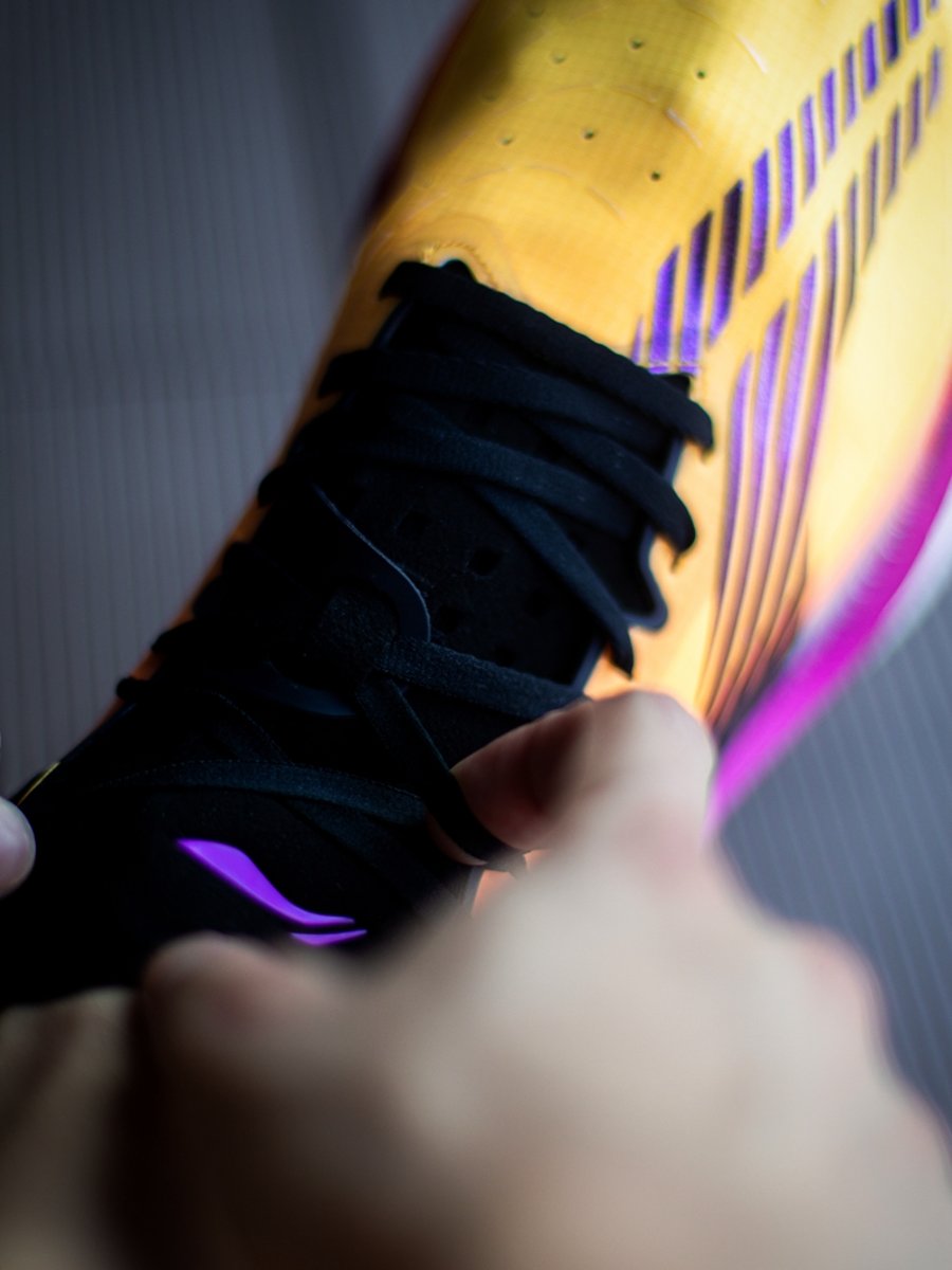 搭配由 2006 年李宁弓科技进化而来的双碳板弜科技,带来极致的压缩与瞬间回弹效果。