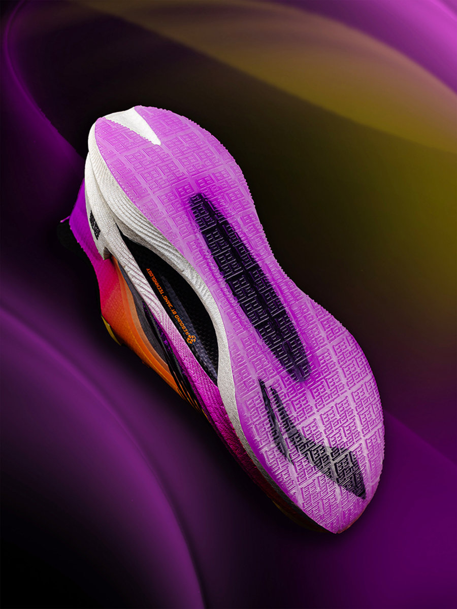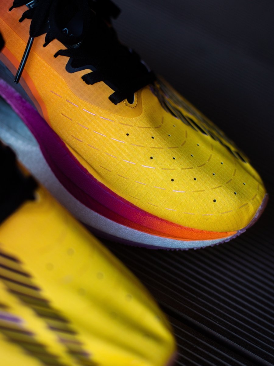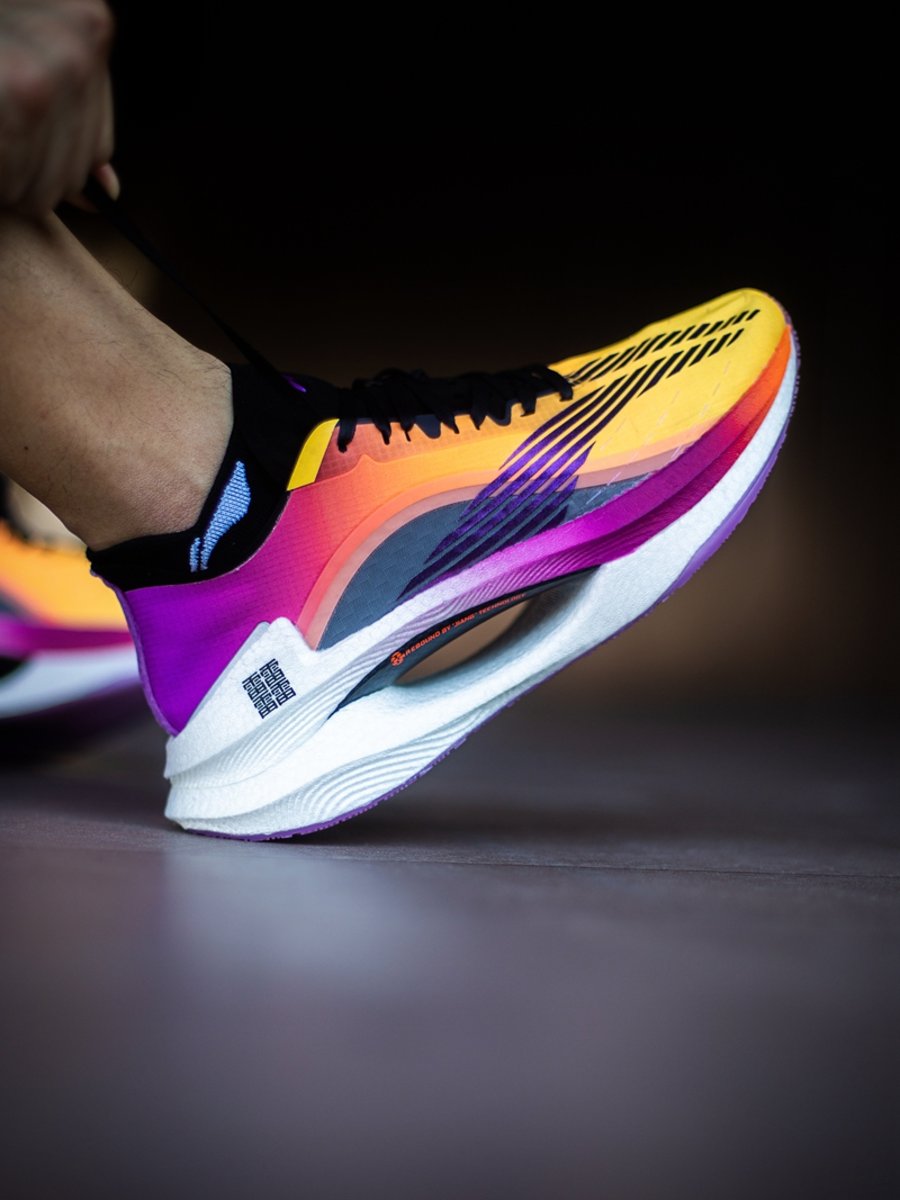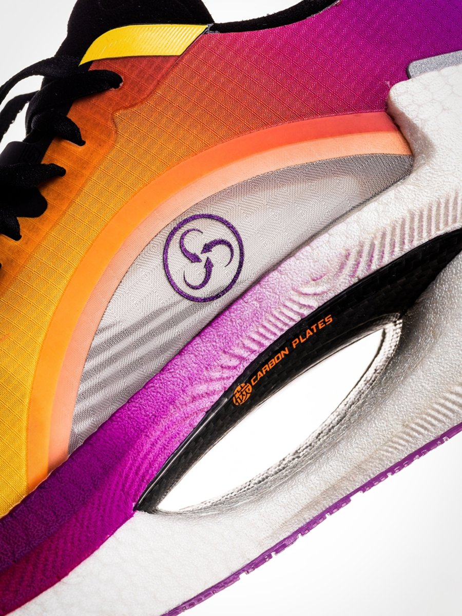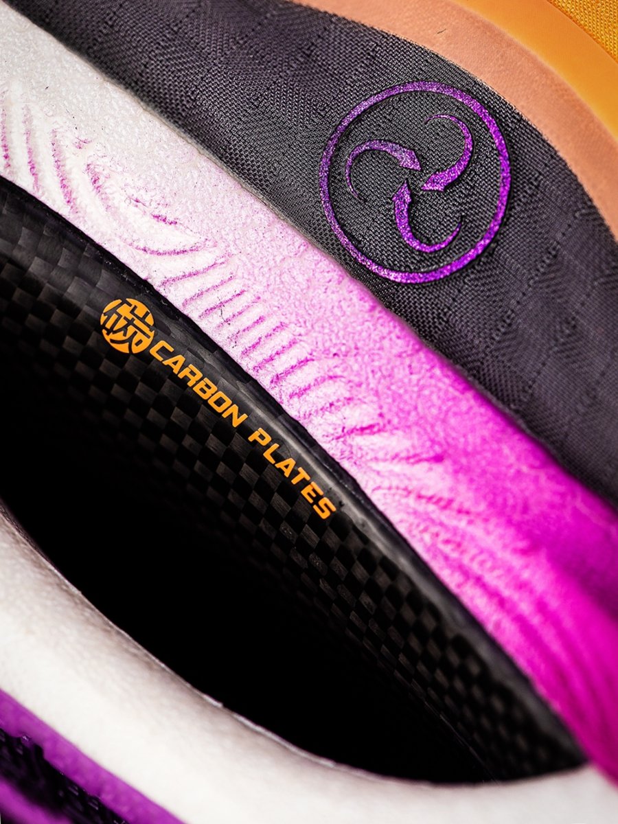 而这也是首次将双碳板注入到缓震系跑鞋中,让更多非专业竞速的跑者,也能体验到适合自己驾驭的高性能跑鞋。