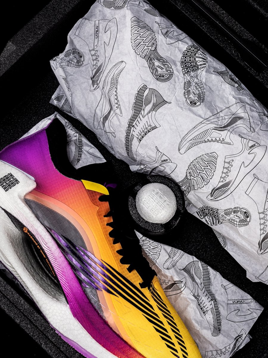 打开后,传统衬纸印有李宁跑鞋矩阵中的经典鞋型,相当走心,非常有仪式感。