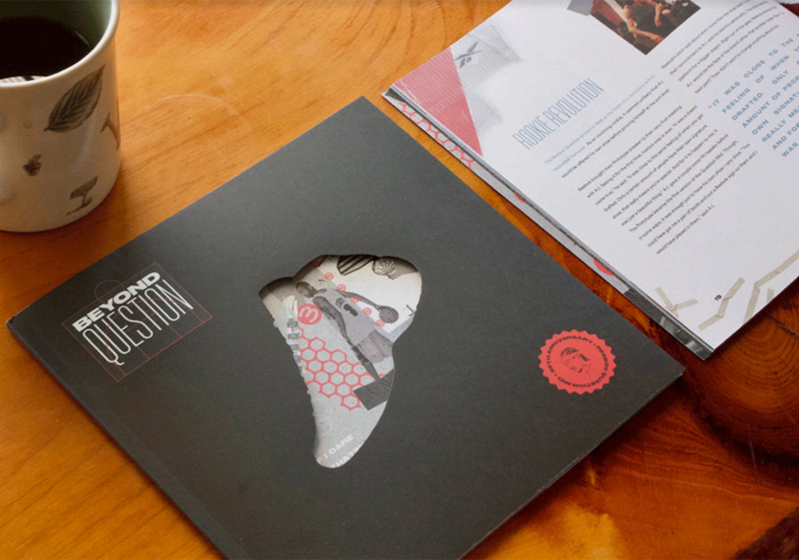 黑色的封面上可见镂空设计的 Question Mid 剪影,同时右下角艾弗森头像慢慢的致敬意味!