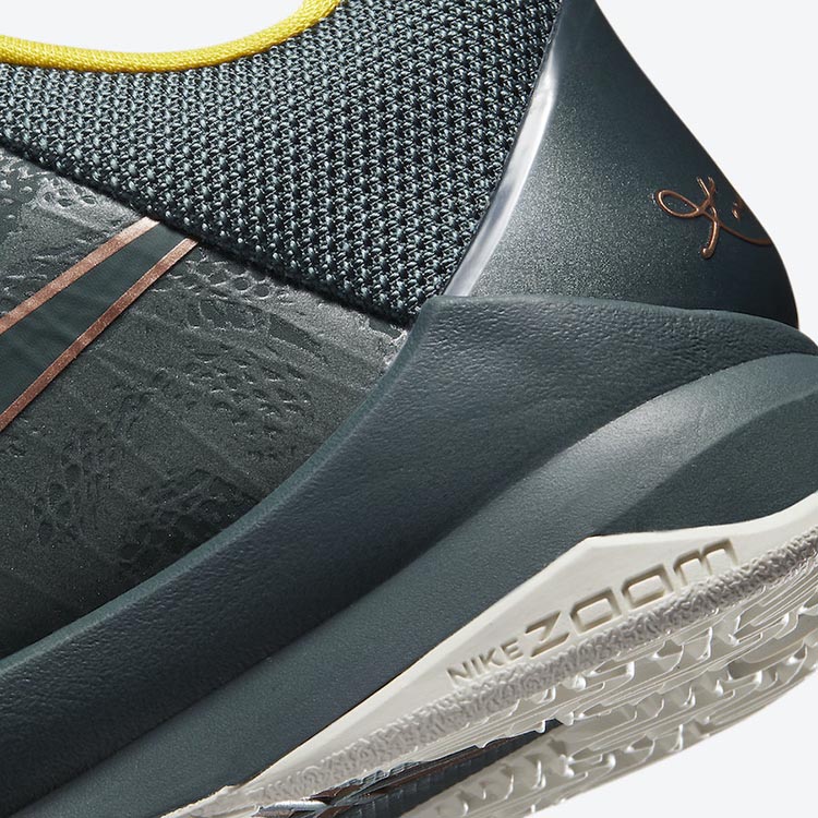 后跟 TPU 位置,一改传统科比手写签名的细节,替换为科比武士 Logo 和 Undefeated 的五栅栏标志,与鞋舌相呼应,彰显联名身份。