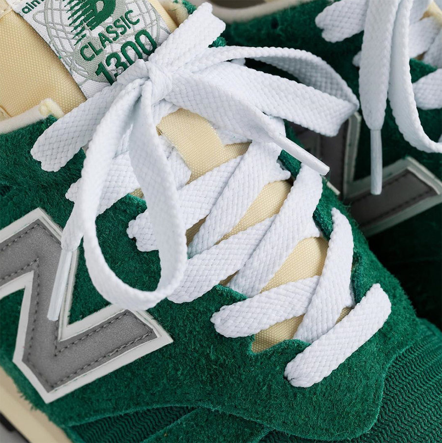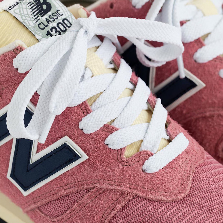此度以 New Balance 1300 为蓝本,采用草绿色和玫粉色两种格调呈现,翻毛皮革材质,辅以米色鞋舌、白色鞋尾等修饰。