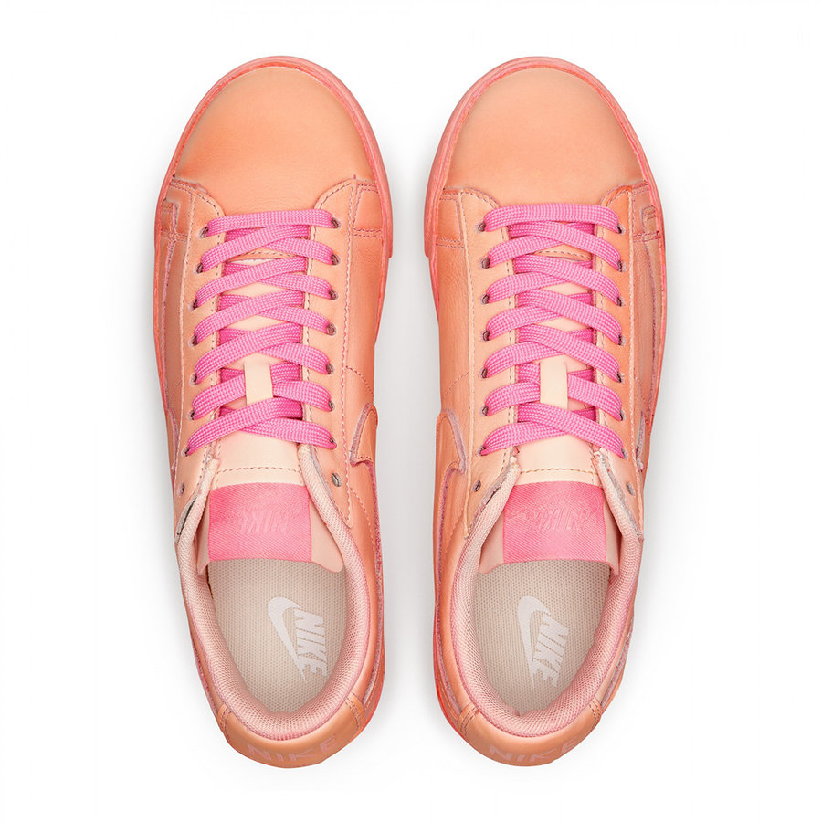 设计蓝本沿用了 Blazer Low 经典的低帮鞋型,独特的浸染效果,让鞋身整体呈现出斑驳的粉红质感,十分讨喜。