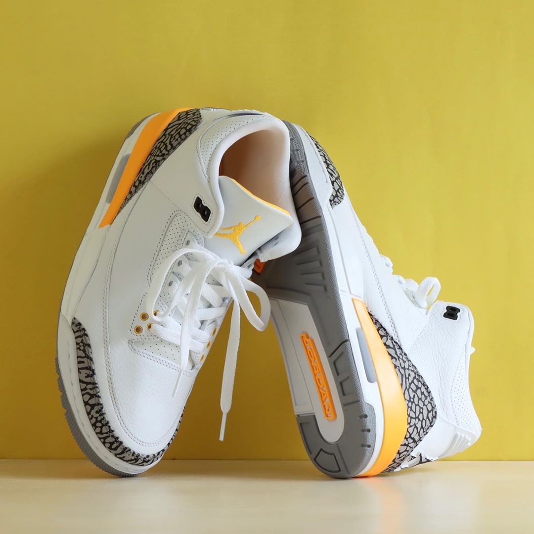 即将发售的一双 Air Jordan 3 WMNS “Laser Orange” 就和北卡 Air Jordan 3 拥有同样的气质,颜值不俗。