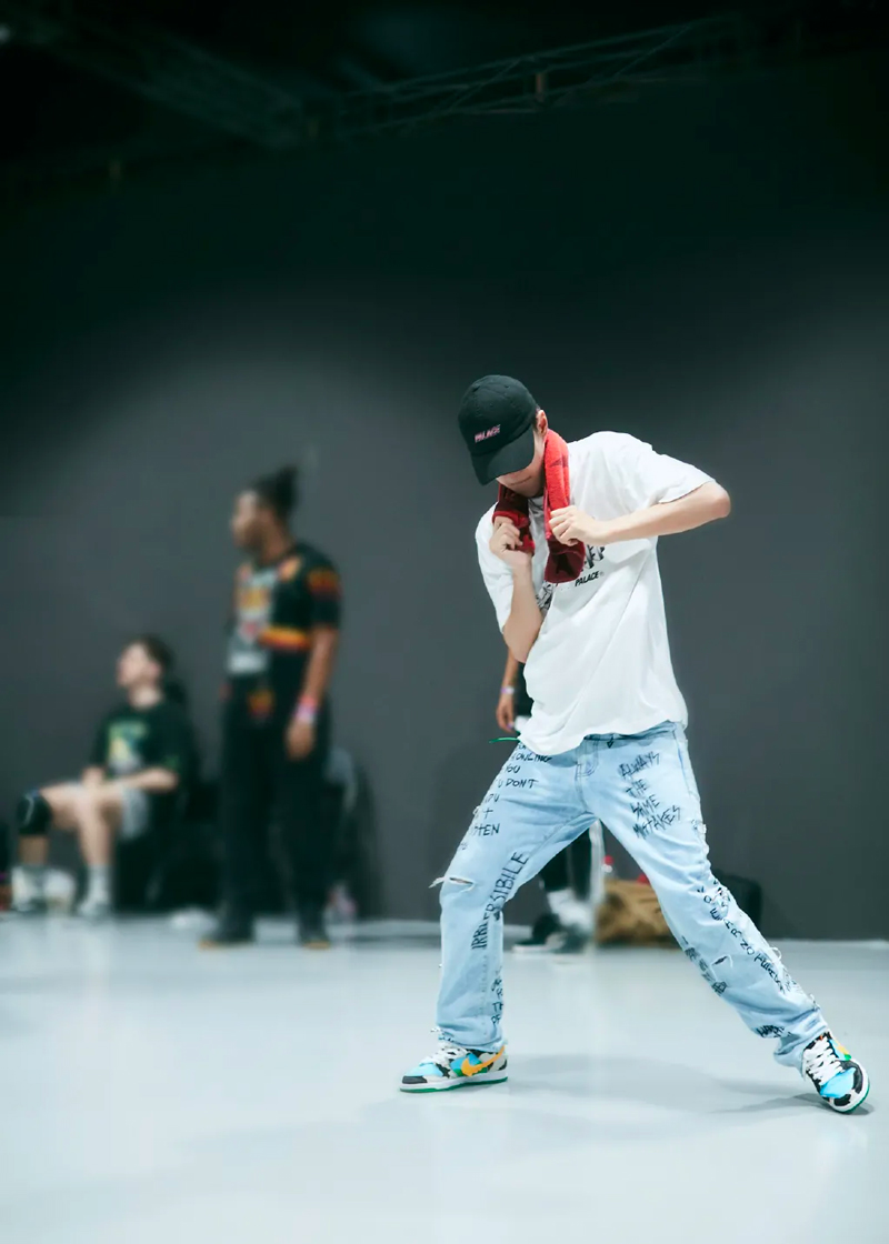 特意选了一双中国香港配色的城市限定贝壳头 Superstar,完美融入自己的 Hip-hop 舞蹈风格,原汁原味的街头感铺面而来。