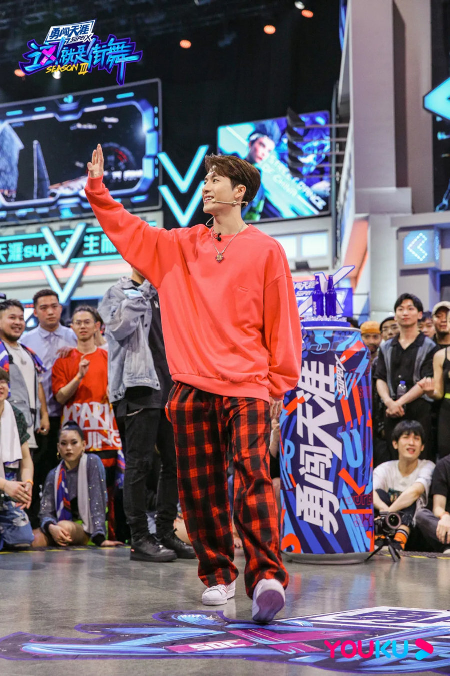 在队长 Battle 环节,一袭肥肥大大的美式休闲装扮亮相,鲜艳的红色系也是街头浮夸不羁的个性之一。