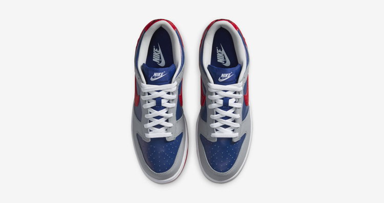 鞋侧红色 Swoosh Logo 带来不错的吸睛效果,而经典的红蓝撞色更让整双鞋多了几分 OG 气质!