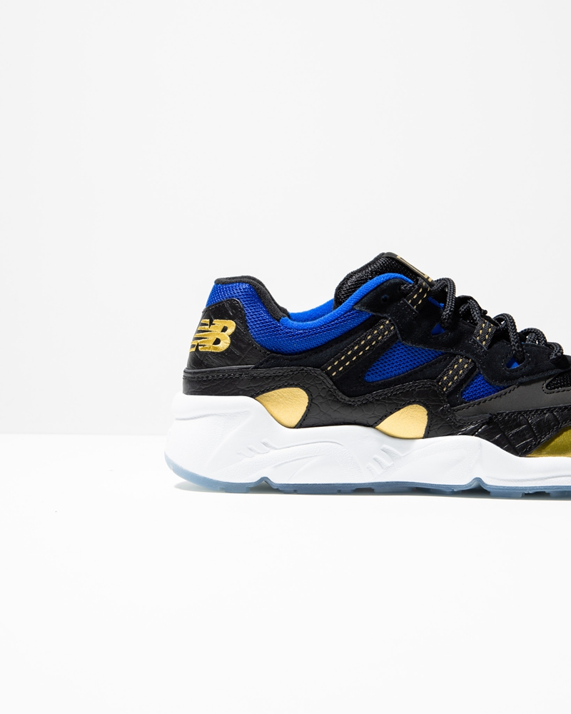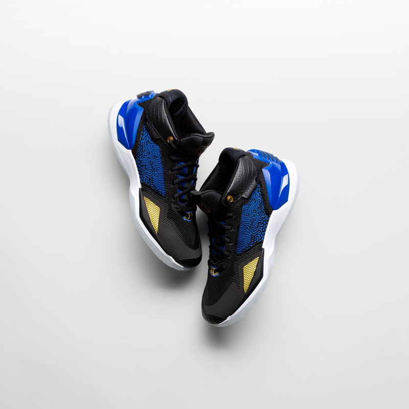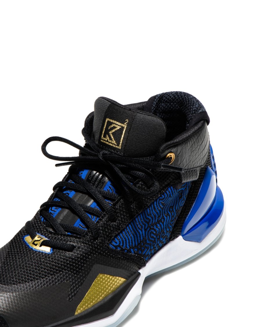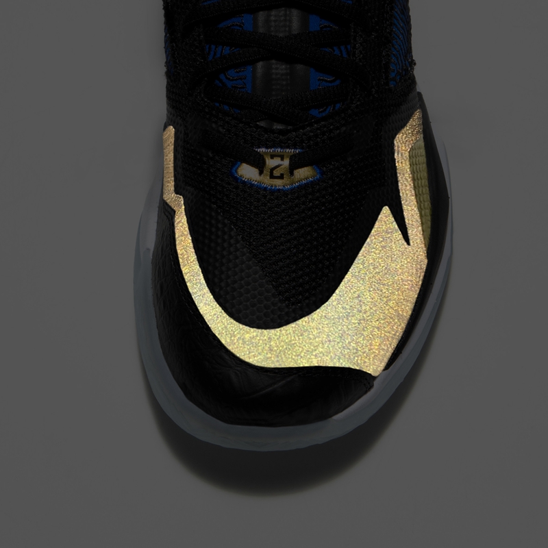 本次官方首发配色以抢七绝杀为配色灵感,鞋身采用黑、蓝、金共同营造,细节刻画非常丰富。