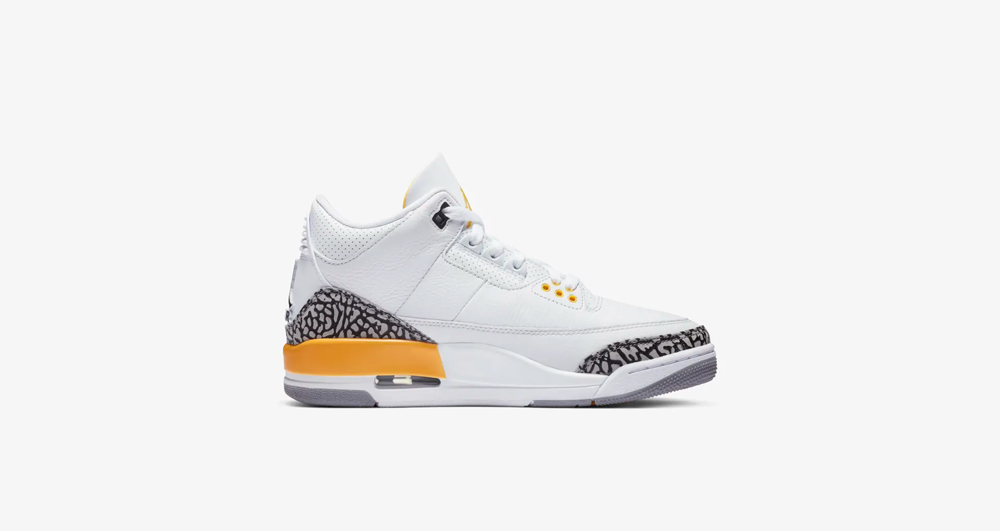 而近期同样极具人气的 Air Jordan 3 鞋型带来一款黄色点缀的湖人风格配色,更是引得无数玩家期待。