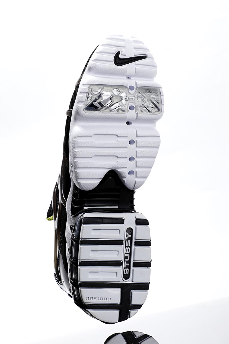 鞋舌 Stüssy Logo 在黑色鞋身的衬托下,更为醒目。