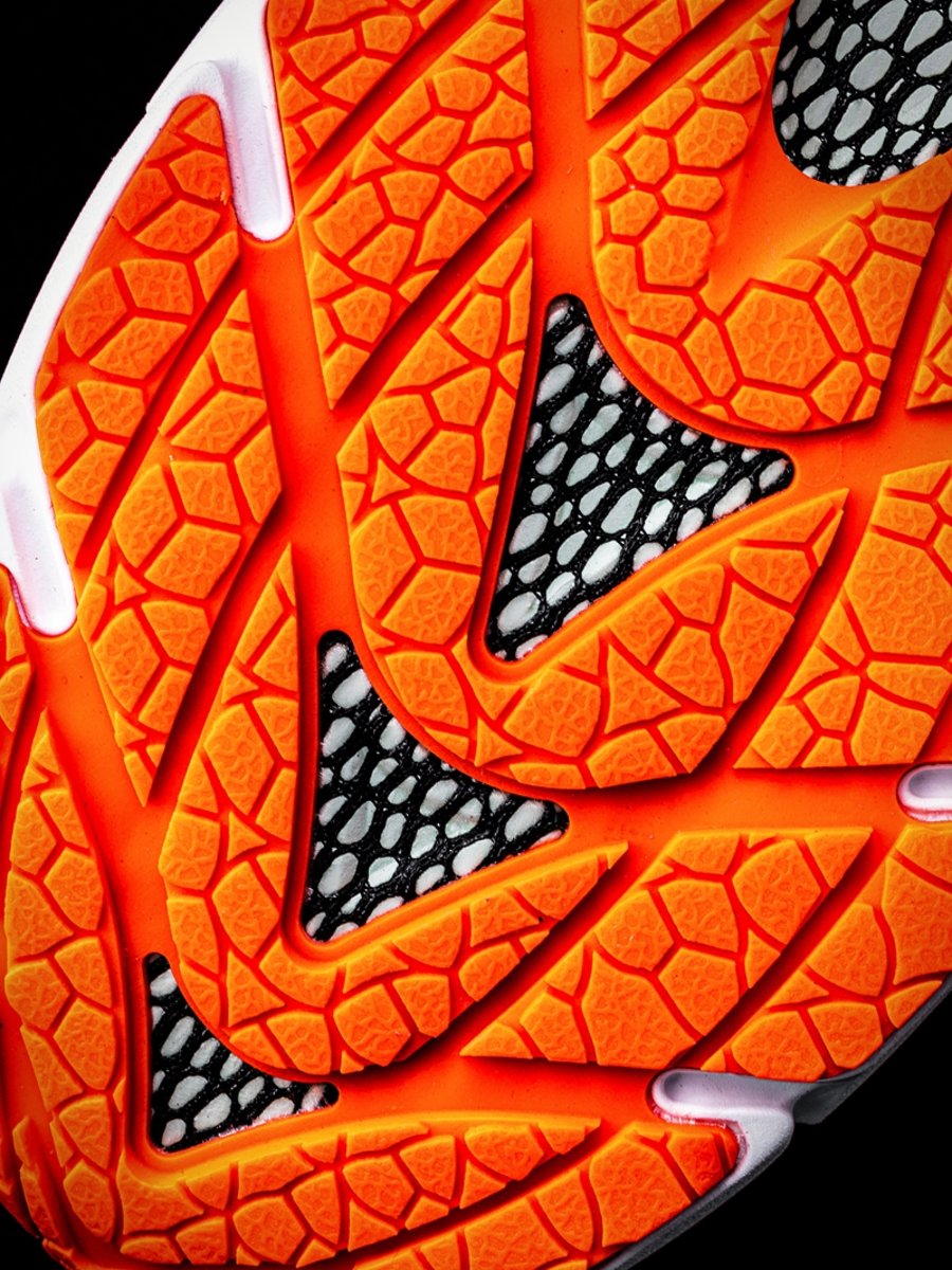 本次中底延续覆盖全掌的 HOVR 缓震材料,通过强力伸缩型能量网格设计,维持能量回弹,帮助双脚缓冲。