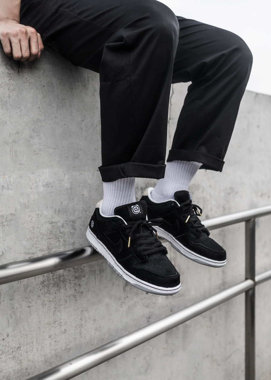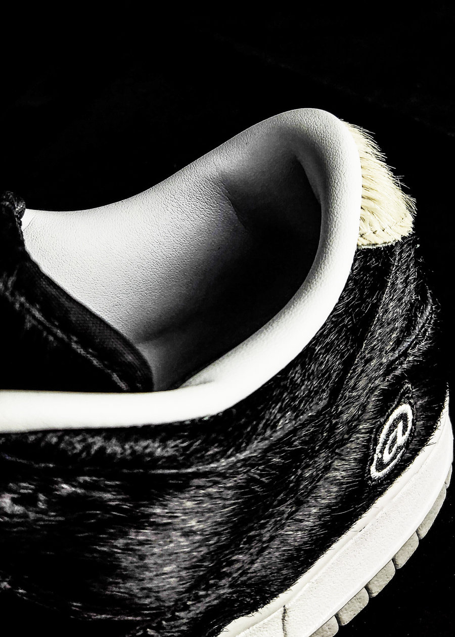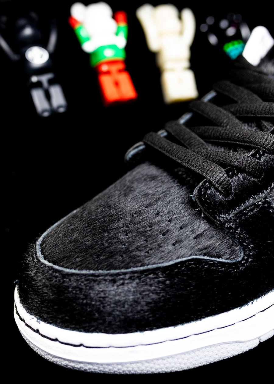 整双鞋以仿马毛材质打造,略带反光光泽,呈现在街头韵味十足的 Nike Dunk SB 鞋型上,既有 OG 气质又有前卫潮流格调。