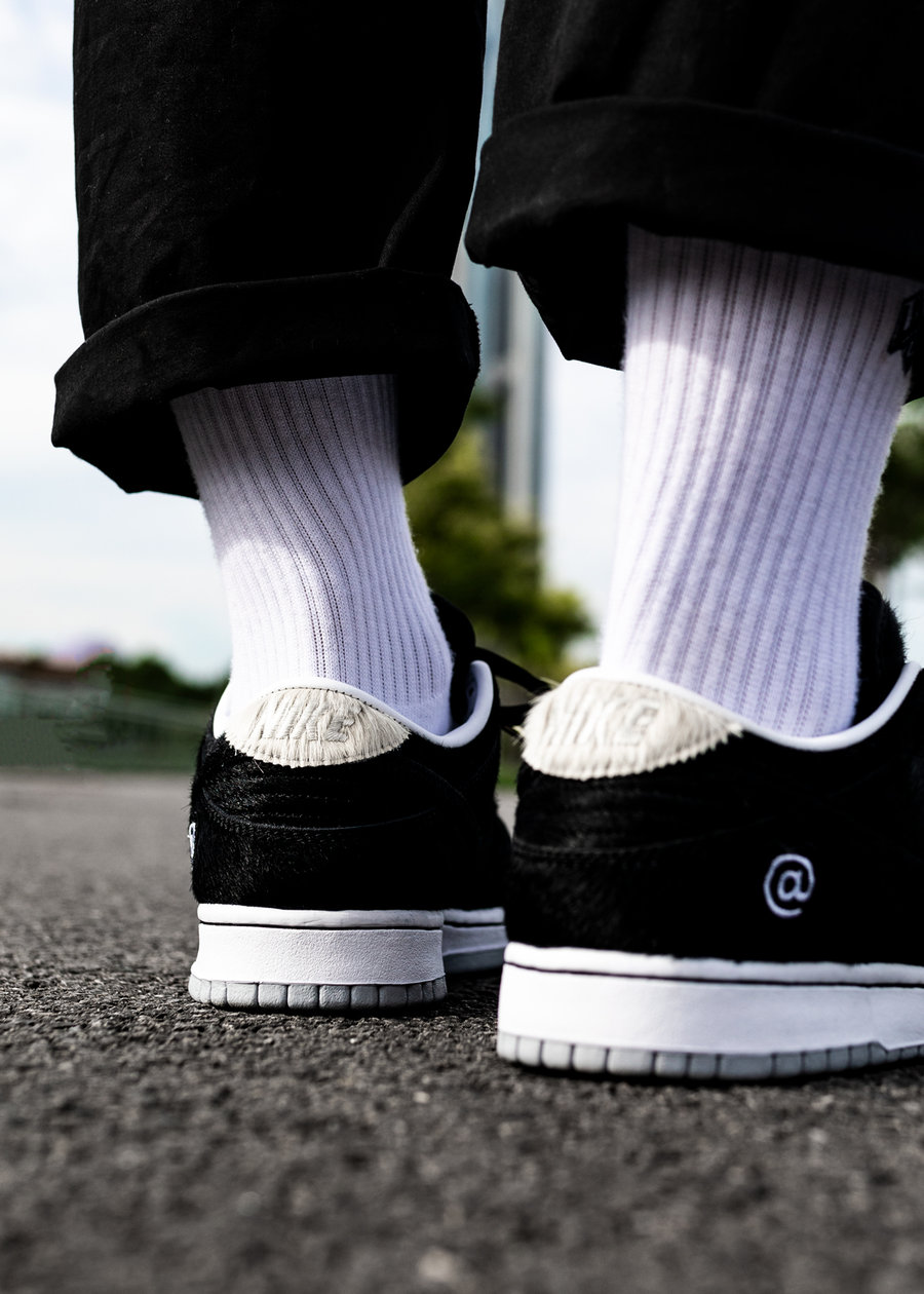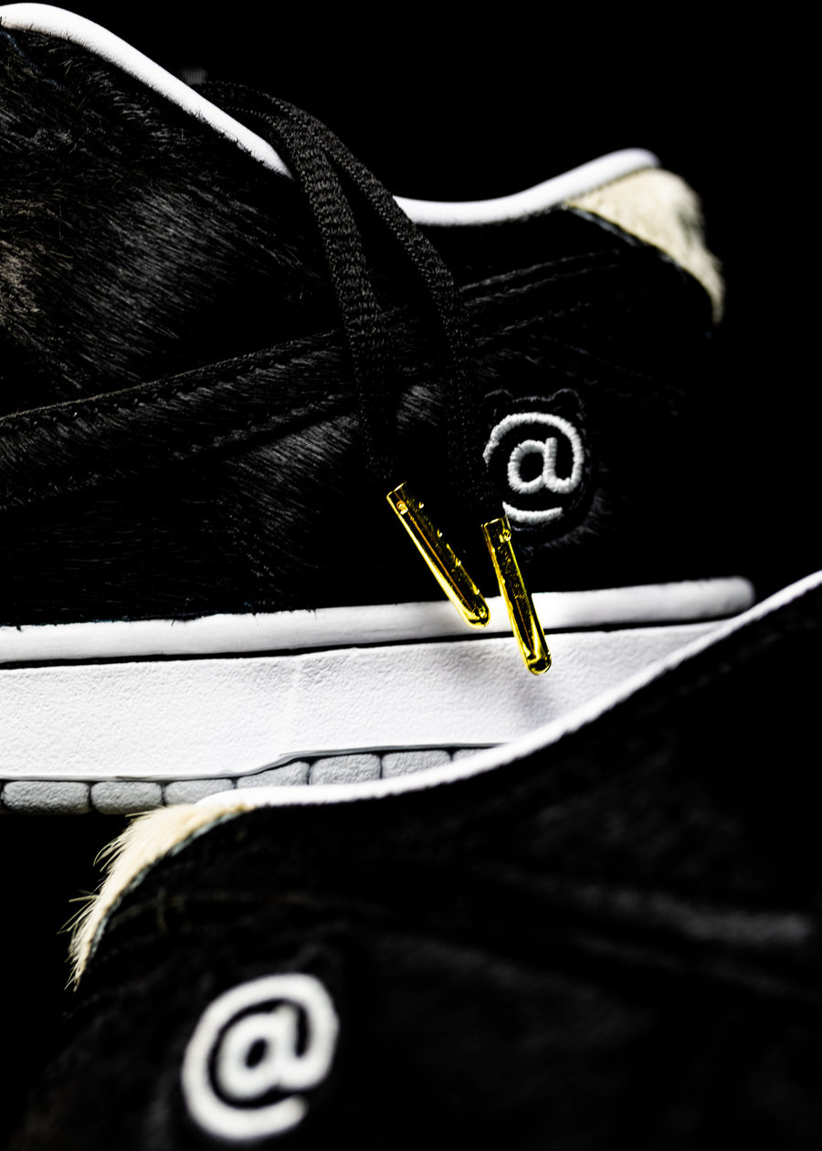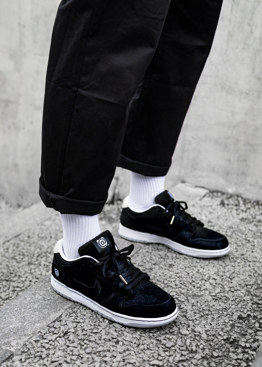 整双鞋以仿马毛材质打造,略带反光光泽,呈现在街头韵味十足的 Nike Dunk SB 鞋型上,既有 OG 气质又有前卫潮流格调。