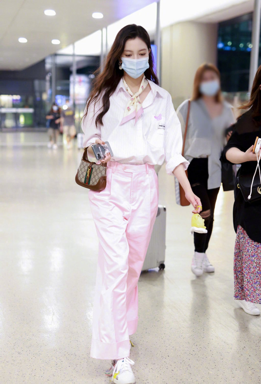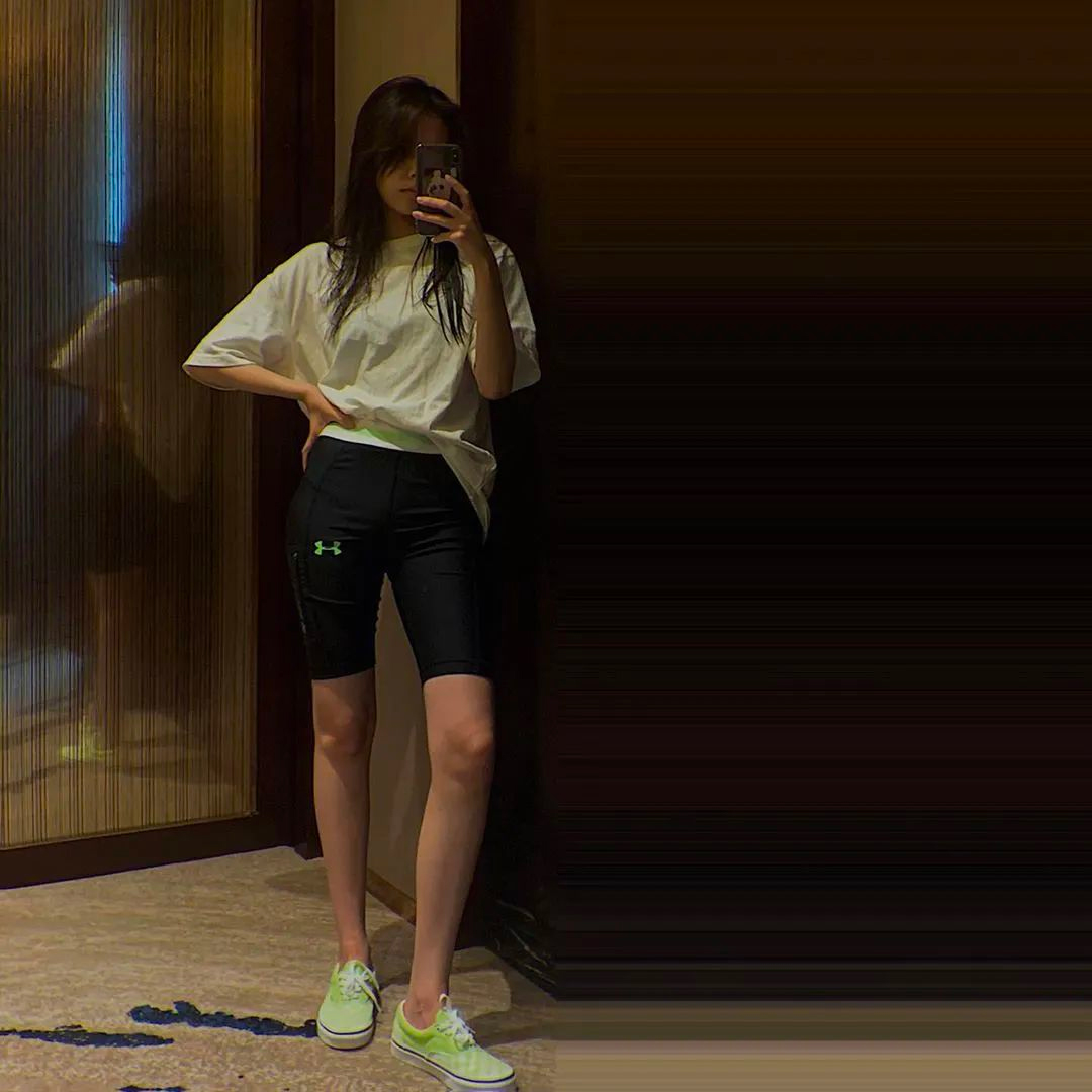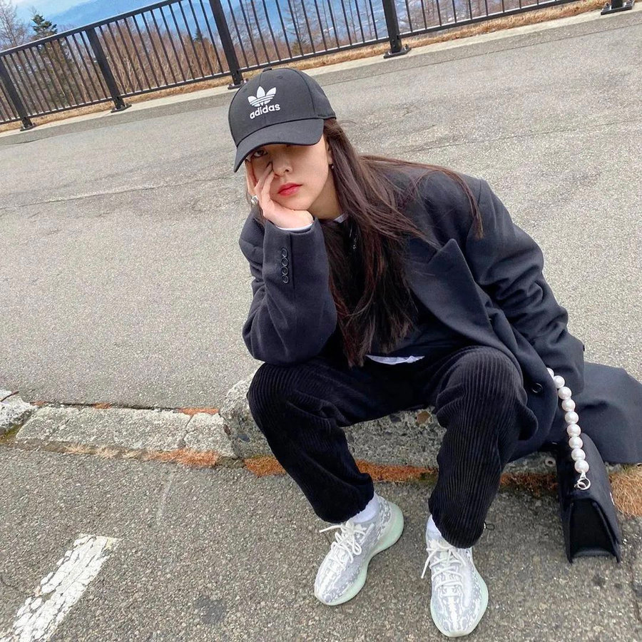 感觉宋妍霏对 Yeezy 系列格外偏爱,竟然能把 Yeezy 拖鞋穿出这种感觉。