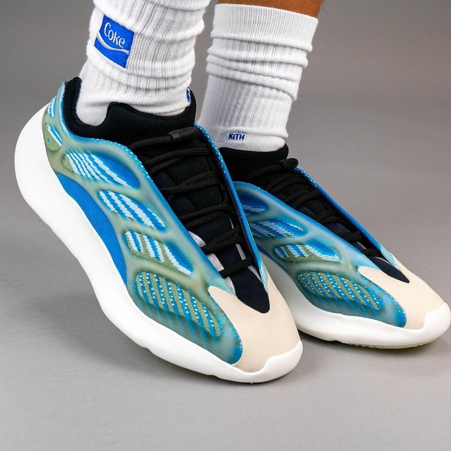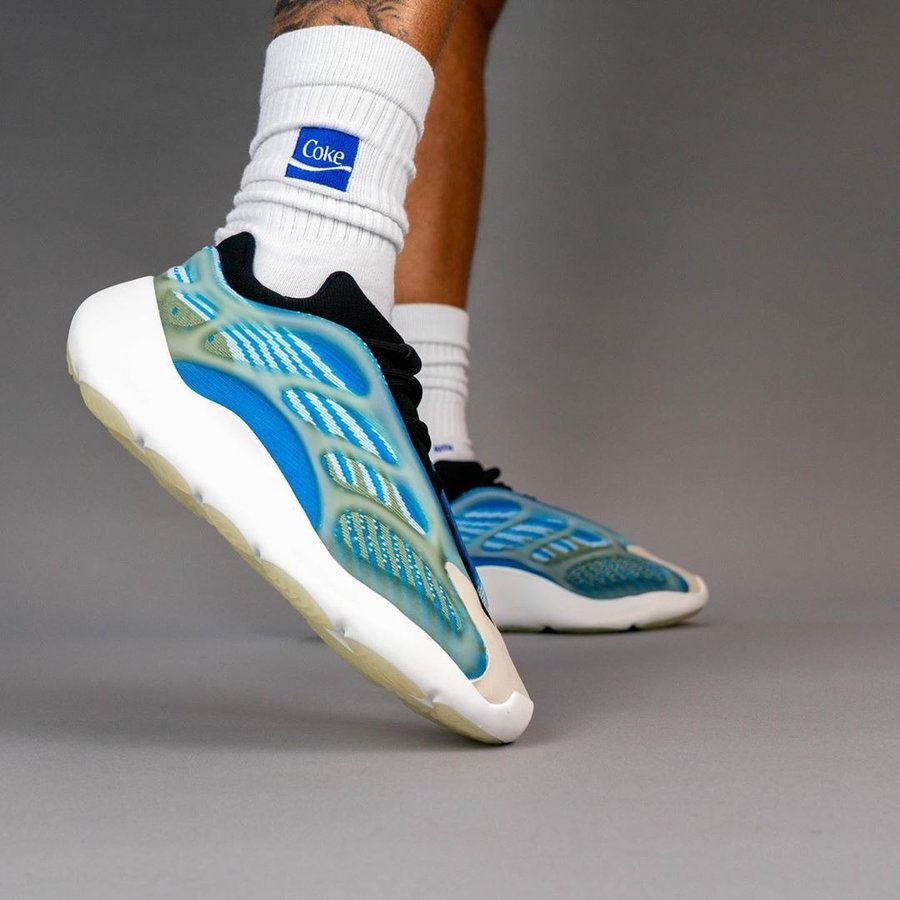 同时今天还有一组极光 Yeezy 700 V3 的上脚实拍释出,看完更心动了。