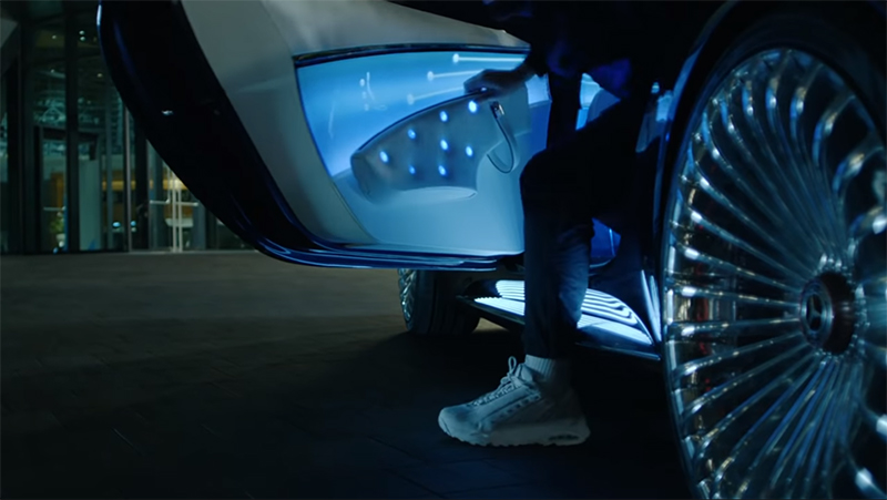 在 MV 片头 Drake 开着一辆奔驰概念车,还上脚了一双神秘鞋款,疑似 OVO 与 Nike 的下一次联名。
