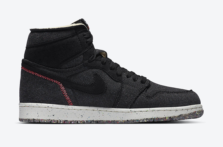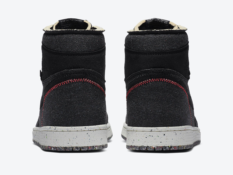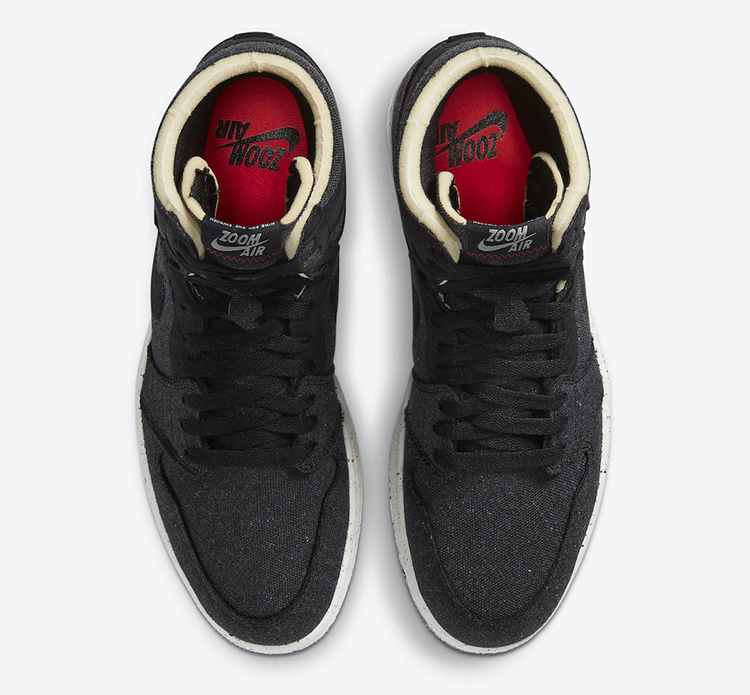 整双鞋以 Air Jordan 1 High Zoom 为原型,鞋面深灰色以回收环保织物打造,粗糙的质感酷似单宁布材质。
