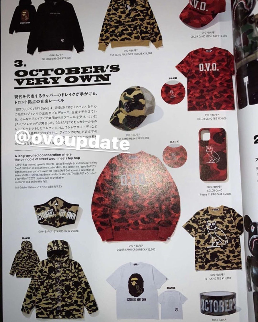 此次 BAPE x OVO 联名部分单品已于某日本杂志抢先曝光。