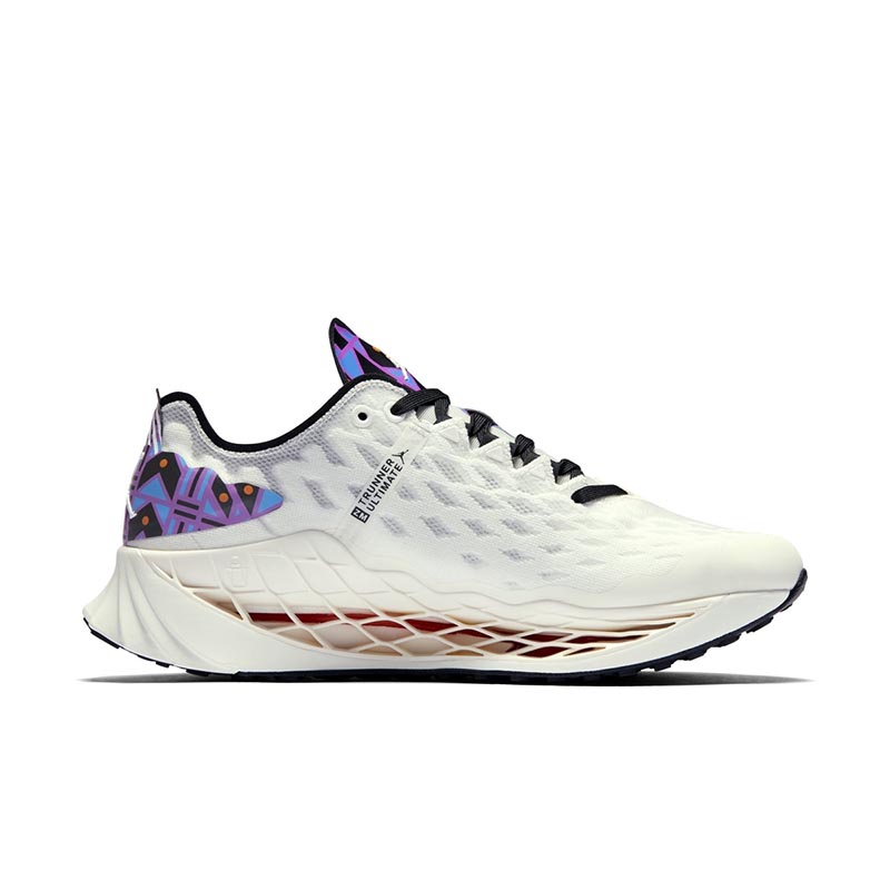 整双鞋采用乳白色织物覆盖鞋面,鞋舌与后跟点缀几何图腾,营造别具风情的视觉层次。