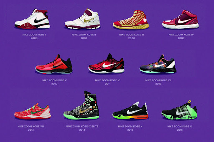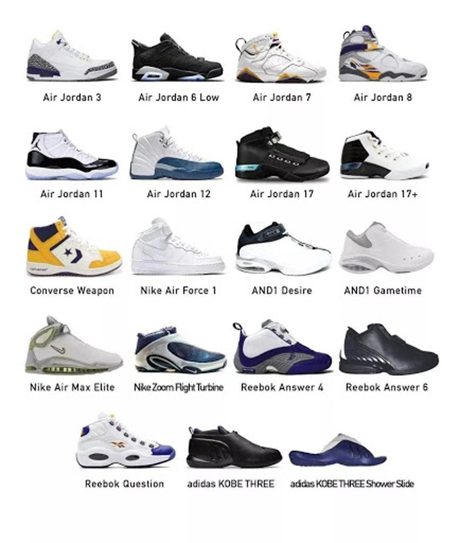 根据不完全统计,科比乱穿鞋时代共上脚了至少 19 款球鞋。