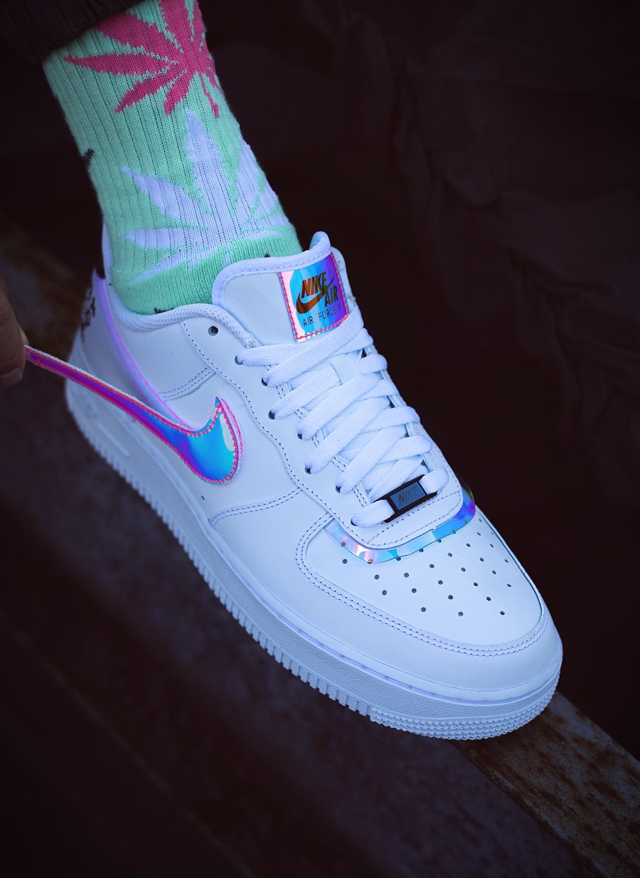 将幻彩元素注入鞋身 Swoosh 与鞋舌等部位。