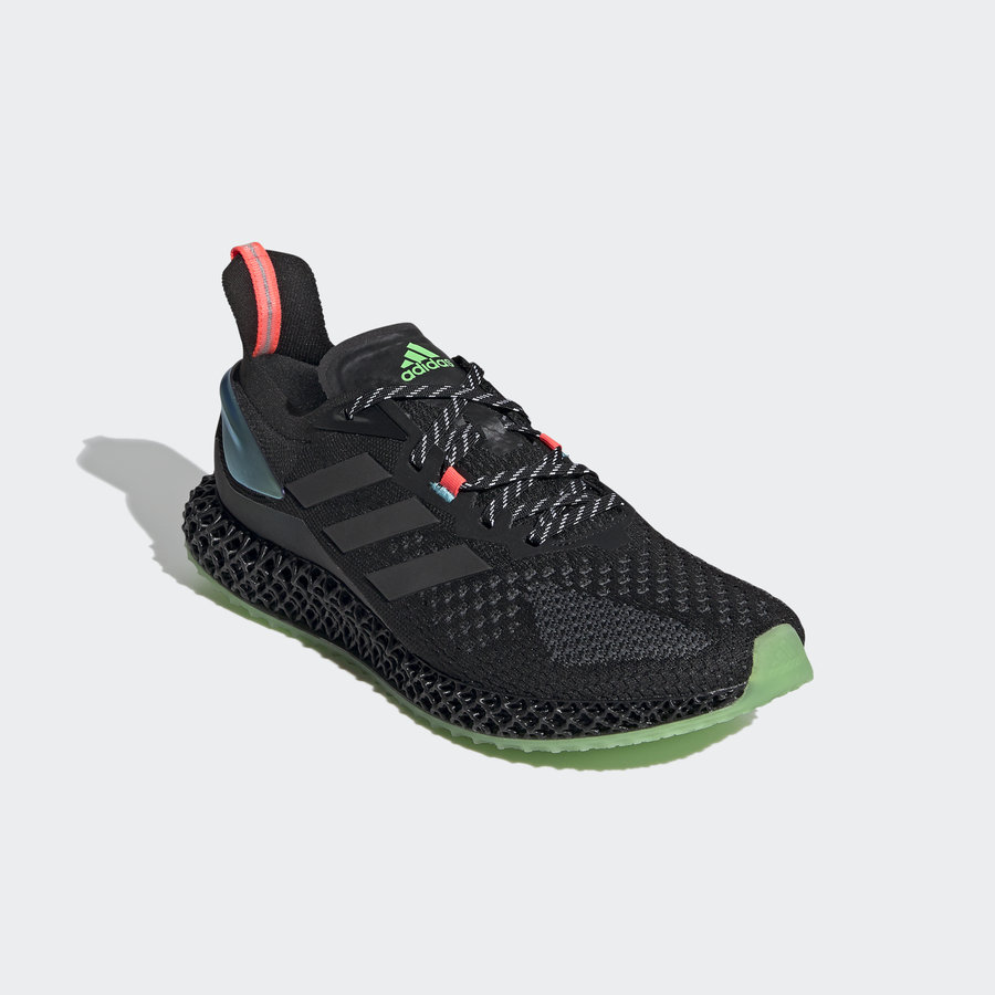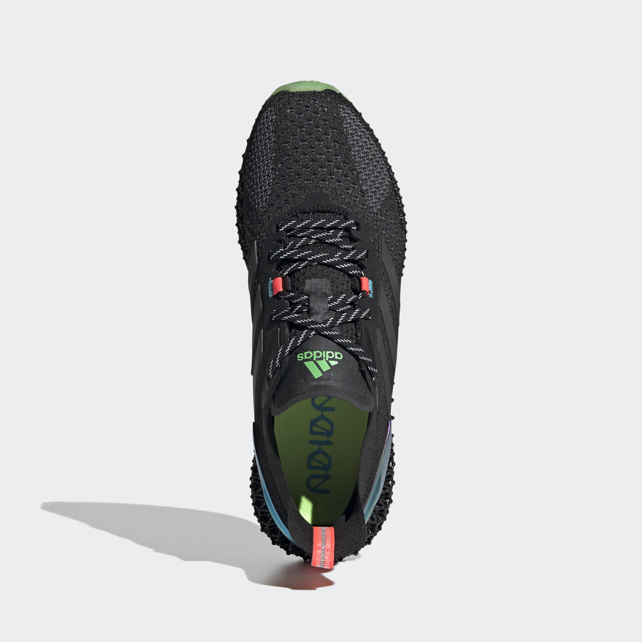 这双鞋采用 X9000L4 的鞋身廓形,融合 3D 打印技术,搭载光固化树脂成型工艺打造的 adidas 4D 数码式打印中底。