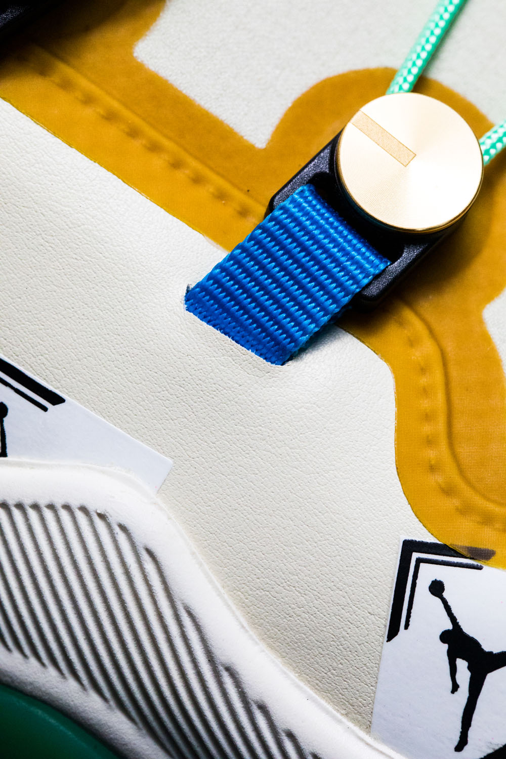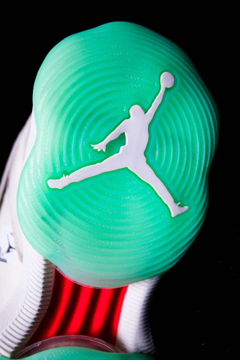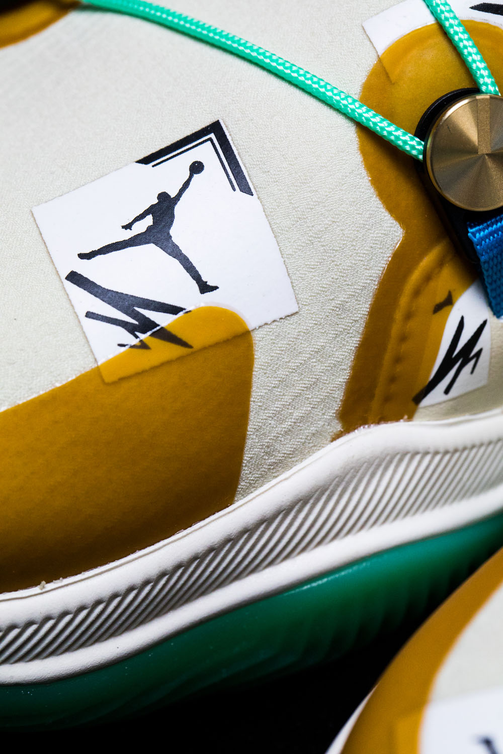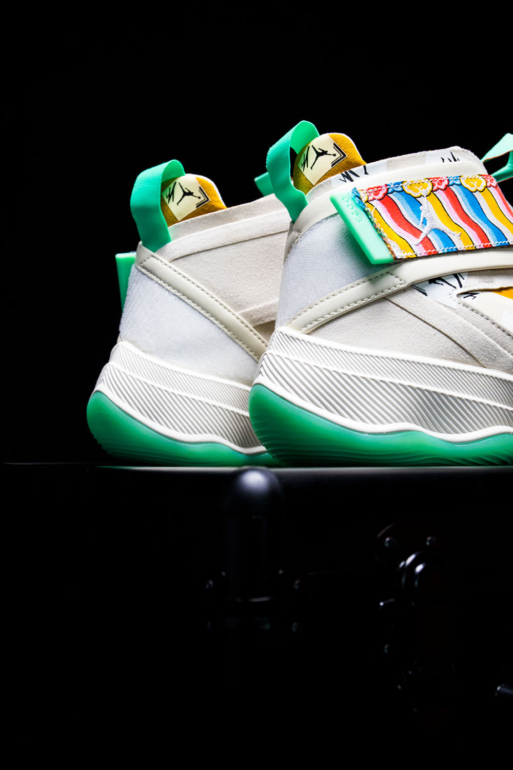 整双鞋采用高密度织物搭配牛巴革和麂皮材质共同打造,鞋面印有特殊 Jumpman Logo 图案。