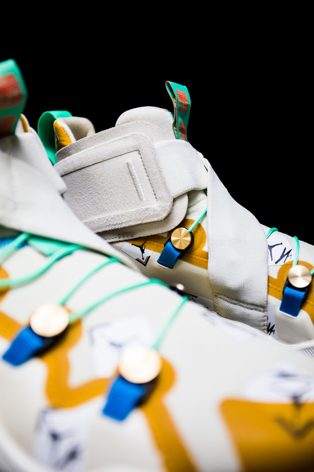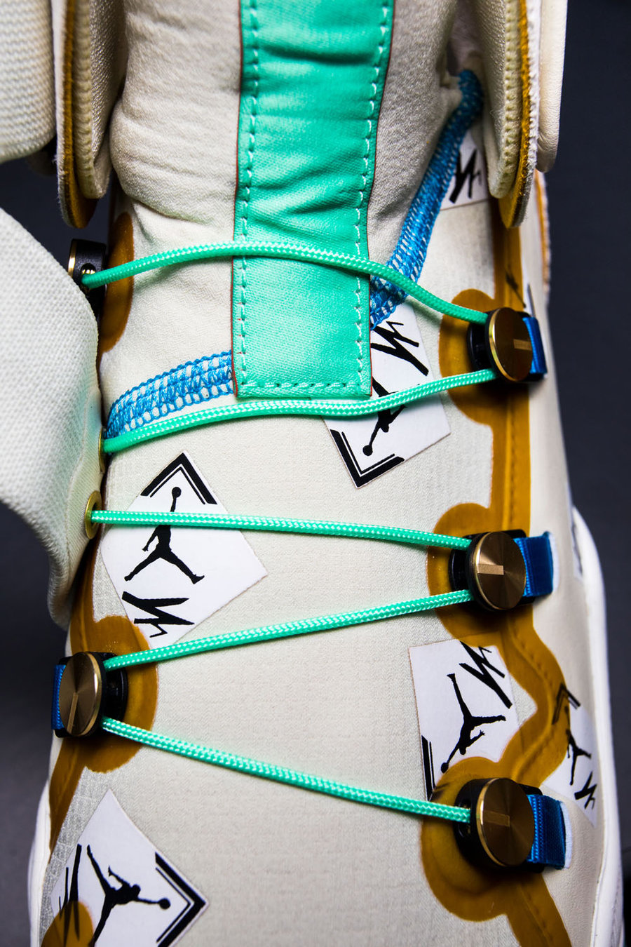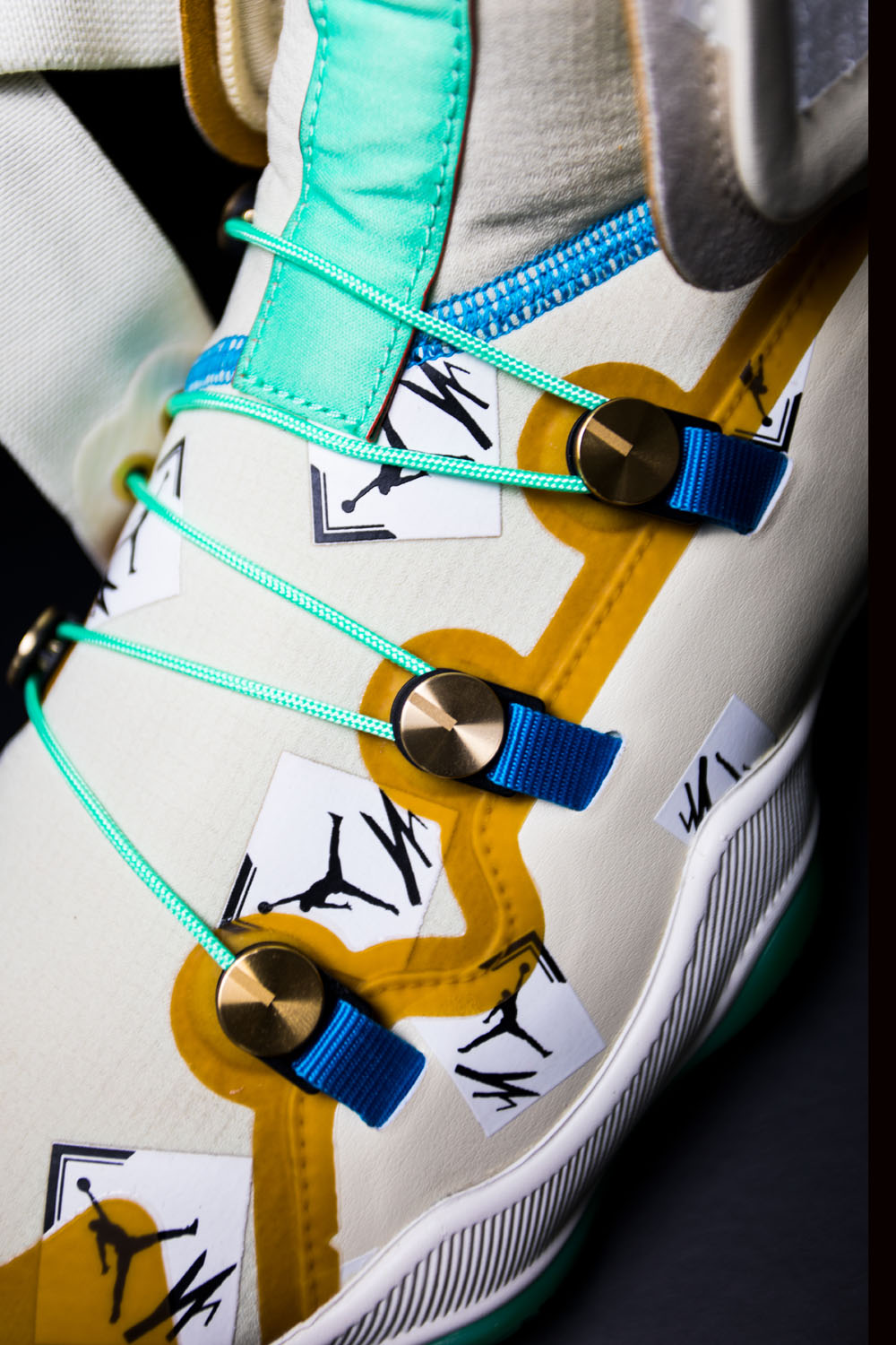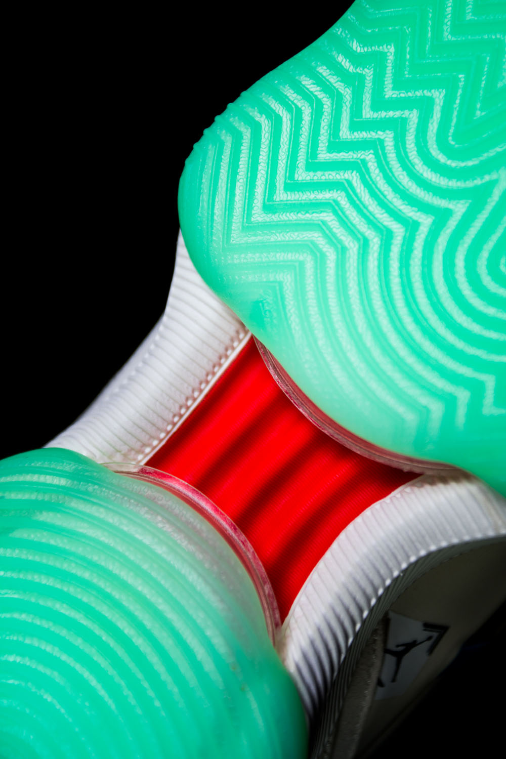 整双鞋采用高密度织物搭配牛巴革和麂皮材质共同打造,鞋面印有特殊 Jumpman Logo 图案。