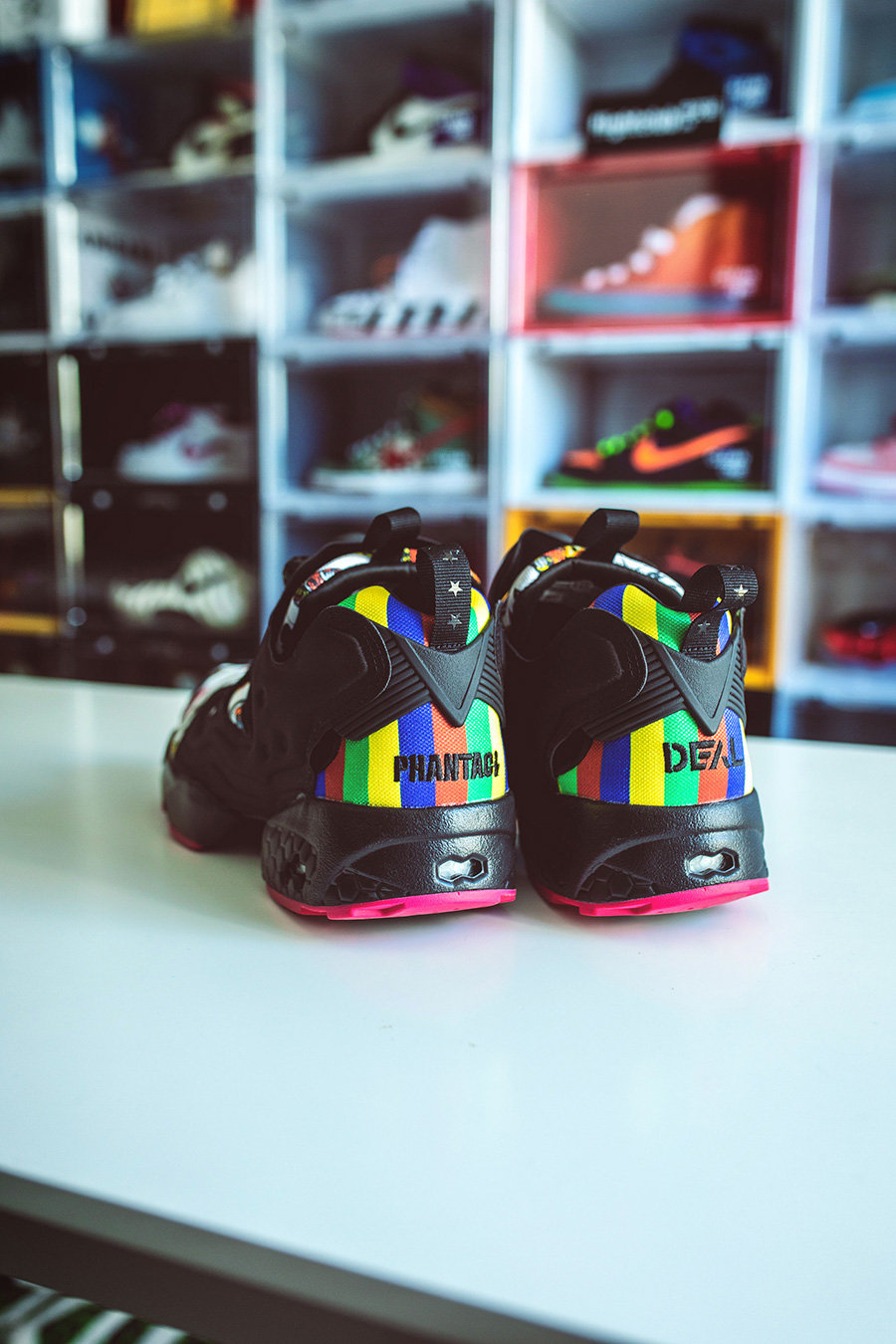从后跟上的 PHANTACi、DEAL 刺绣,我们就可以知晓,这是一双三方联名的鞋款,而提到 DEAL,则是 Pump Fury 玩家再熟悉不过的主题了。